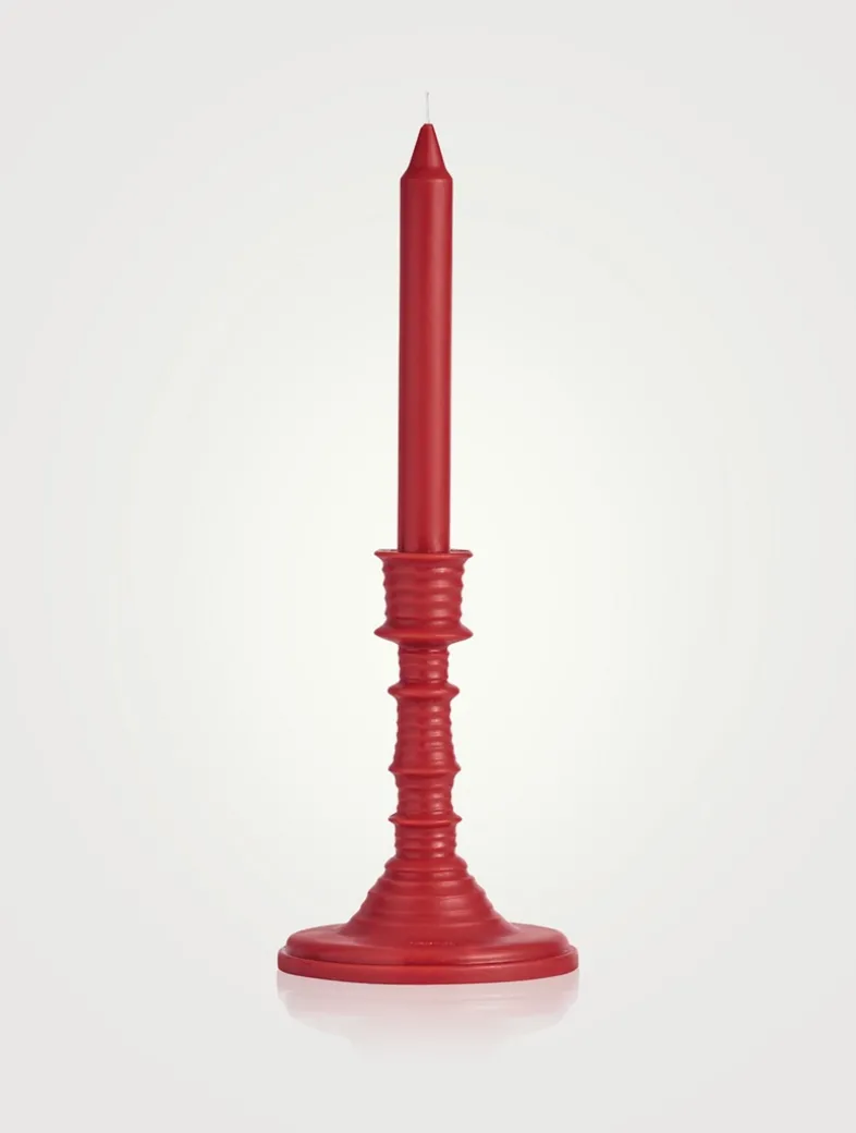 A candlestick-shaped candle, crafted in wax, perfumed with tomato leaves essence. The ‘Tomato Leaves’ wax candleholder evokes, with its green scent, the fresh, verdant aroma of the vines just before they burst into fruit. It reveals delicate notes of cassis berries once lit. This candlestick shaped candle has a single cotton wick and should be placed on a heatproof surface, such as our terracotta base intended for this use, available to buy separately. All LOEWE Home Scents items are olfactory creations that highlight nature’s most natural and pure scents. Note: Due to their handcrafted nature, no two Home Scents Wax Candleholders are exactly the same.