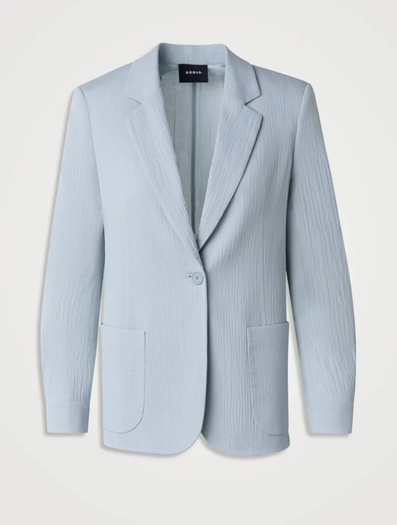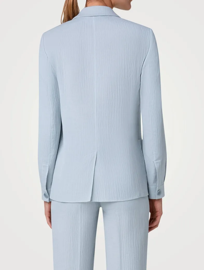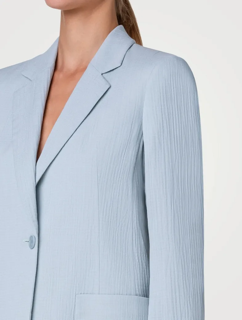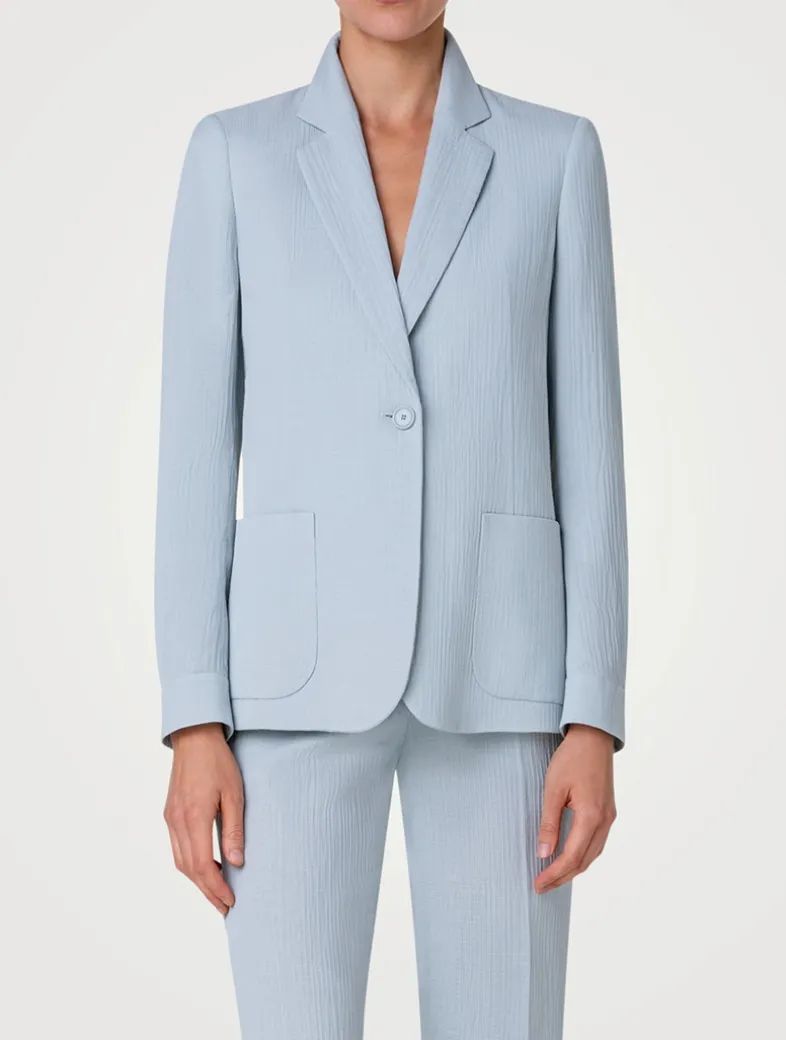 This single-breasted jacket is crafted of an ultra lightweight mix of cotton, silk and wool stretch for unrivaled comfort, versatility, and a sophisticated look. It features a lapel collar, single-button closure, and patched pockets.