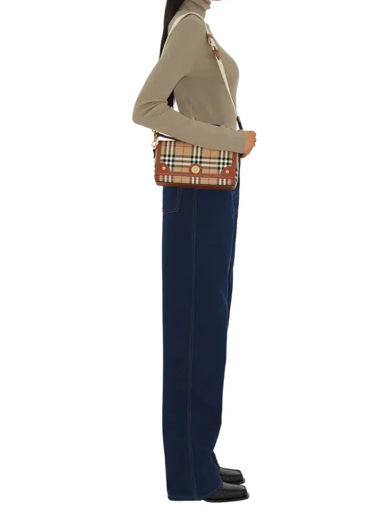 An archive-inspired crossbody bag made in Italy from calf leather and Burberry Check with a cotton lining. Carry by the top handle, across the body or wear on the shoulder using the detachable strap.