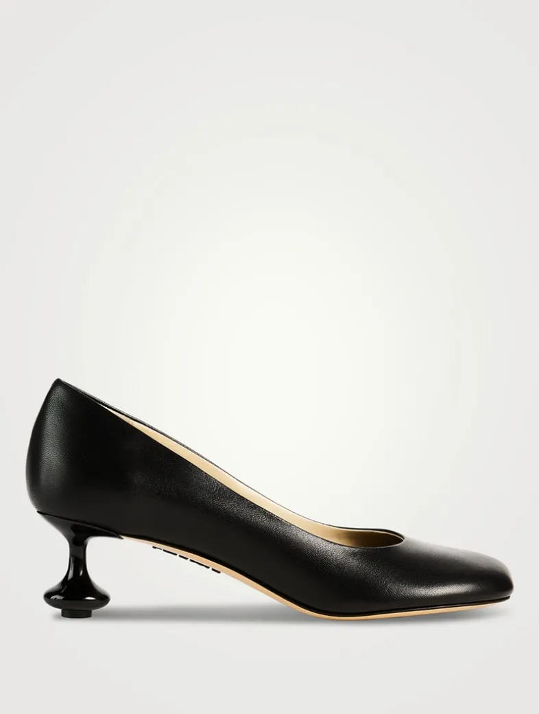 A luxurious take on a smart silhouette, these second-skin pumps are crafted in buttery-soft goatskin with a petal-shaped toe and lacquered heel.
