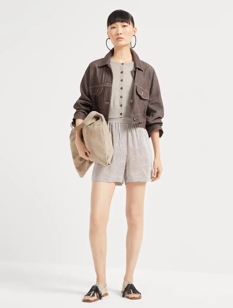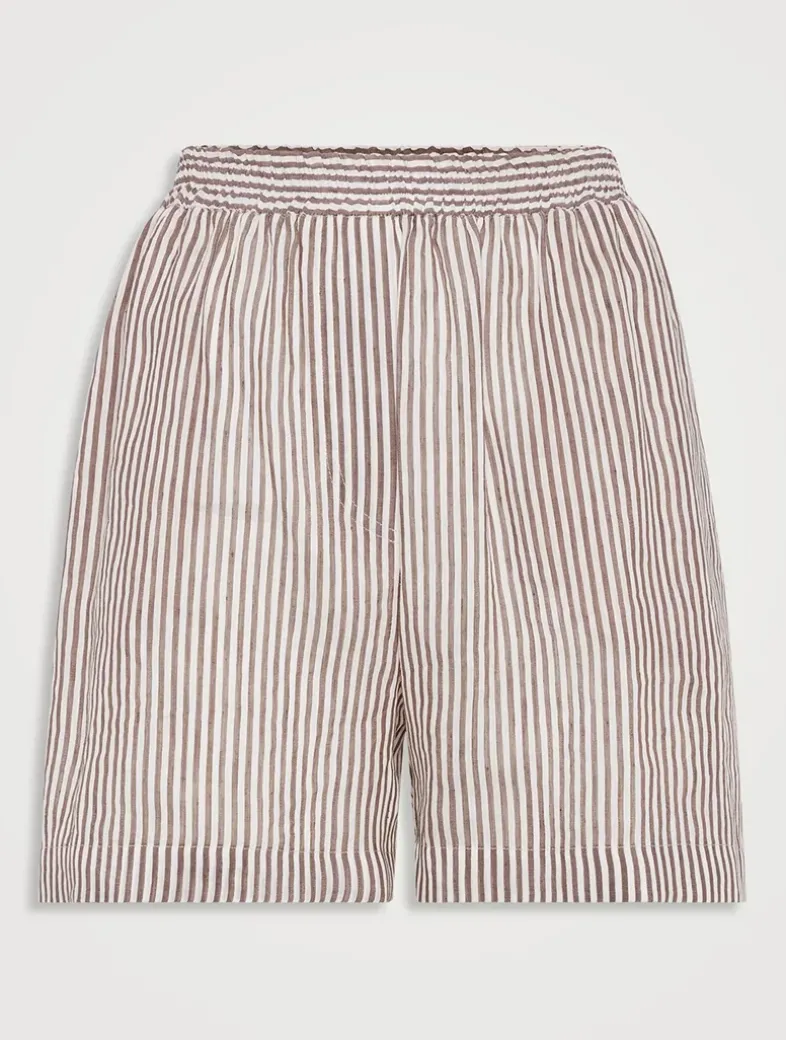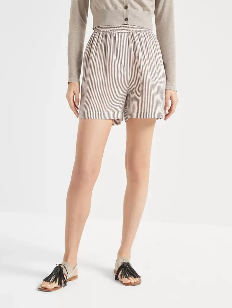 Striped linen and silk organza track shorts
