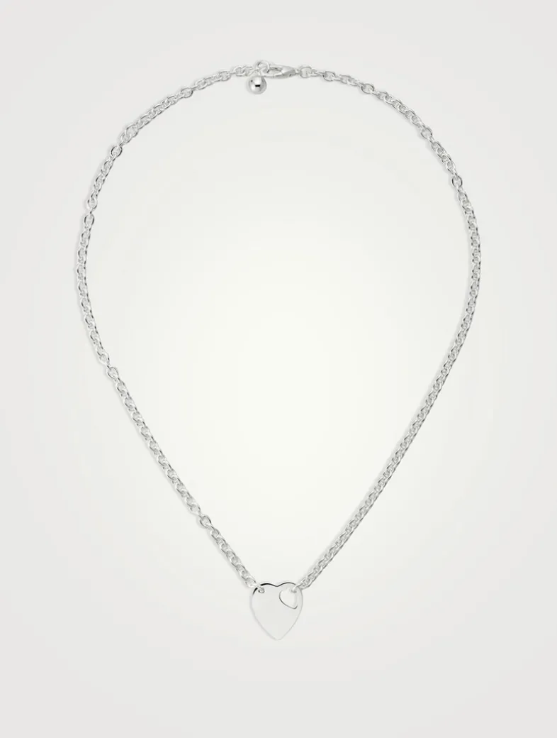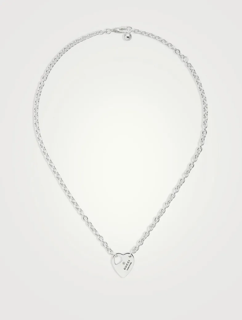 This sterling silver chain necklace features a playful cut-out heart within the signature heart pendant. Finished with Gucci Trademark engraving on the pendant, and a clasp closure with silver baule.