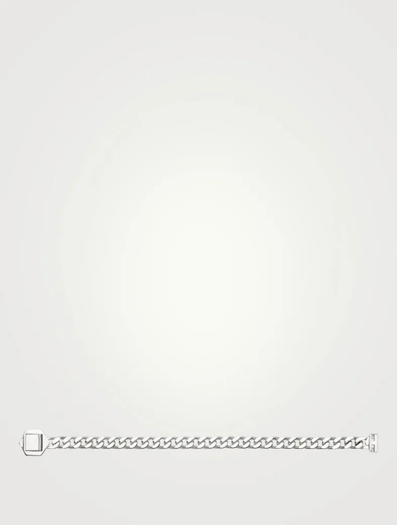 Crafted from 925 sterling silver, the Gucci trademark embossing defines this bracelet with a unique cassette closure. The intricate chain reflects the House’s narrative, and further enhances the accessory.