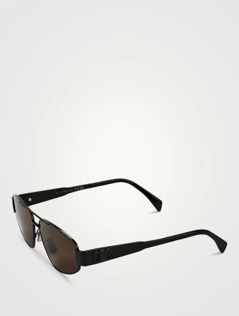 Made in Italy with a classic aviator silhouettes, these sunglasses are updated with the Triomphe metal signature in relief on both temples.