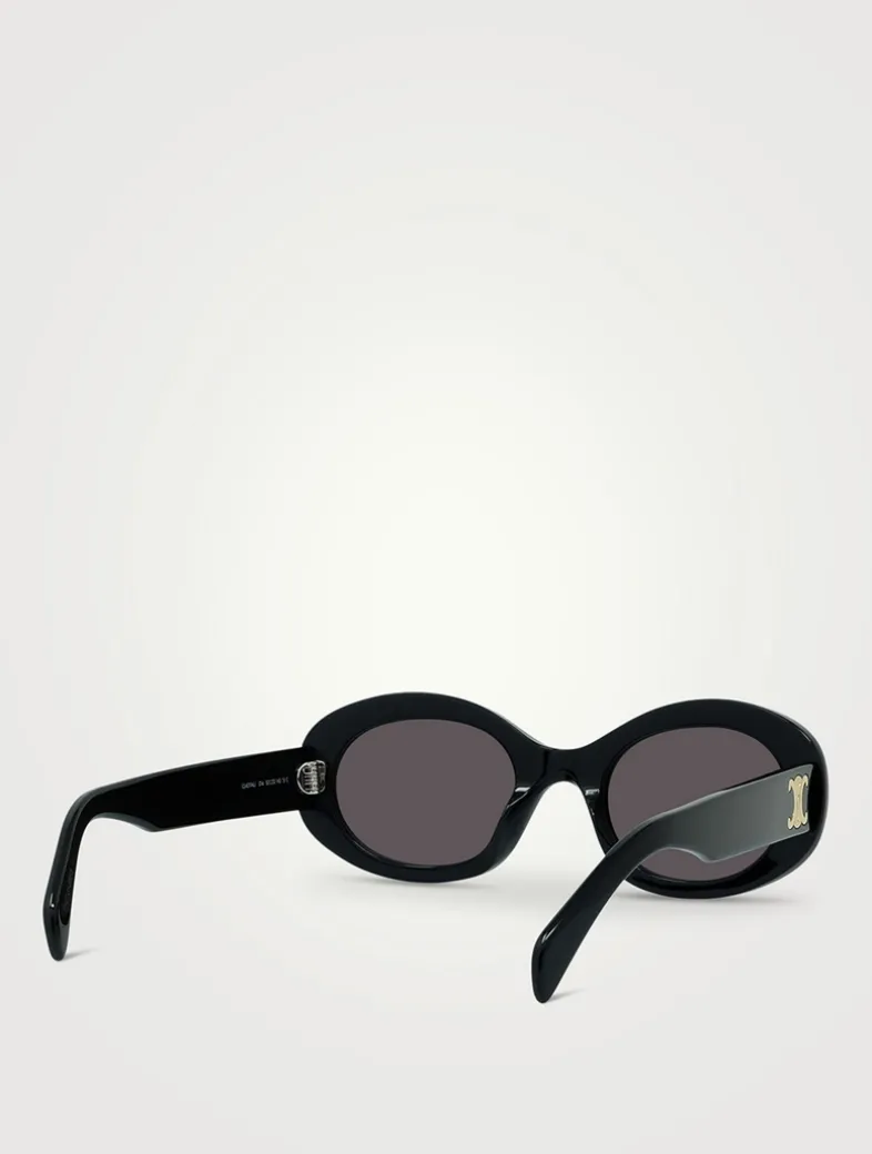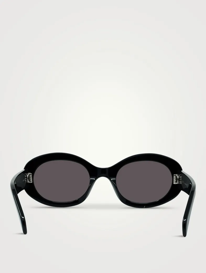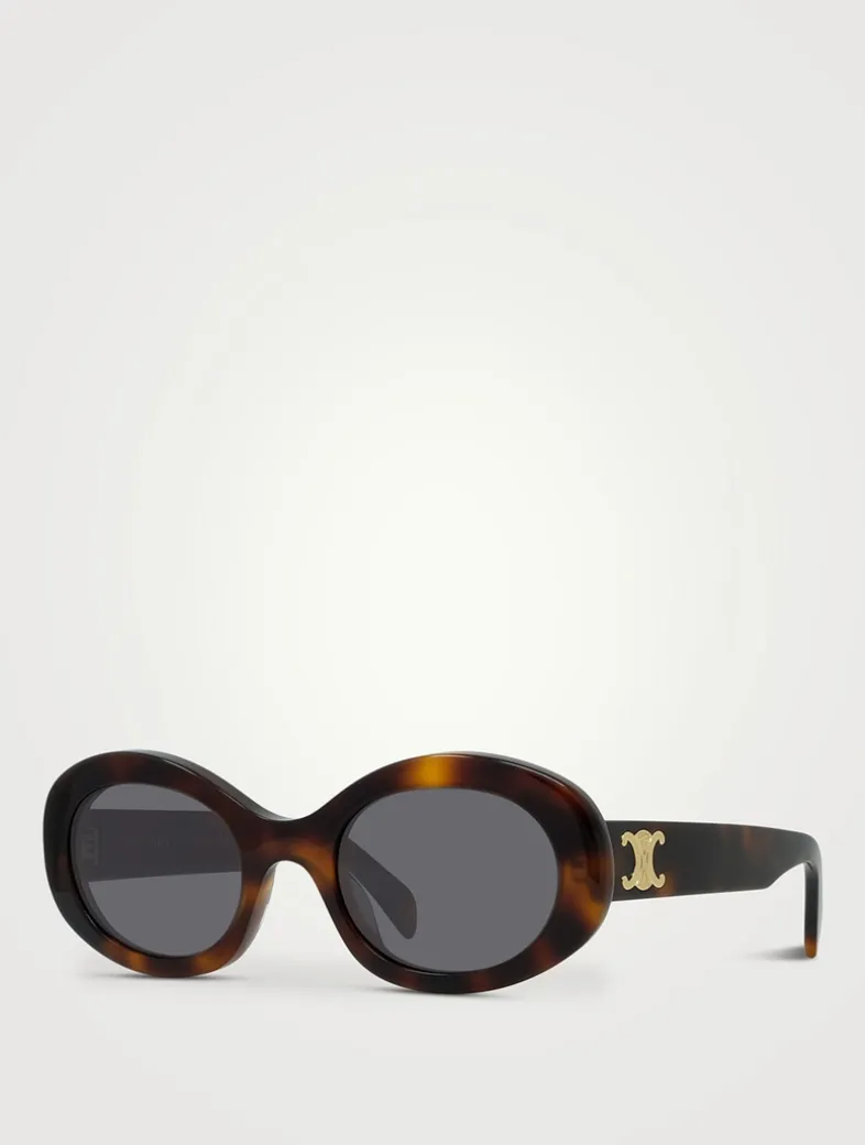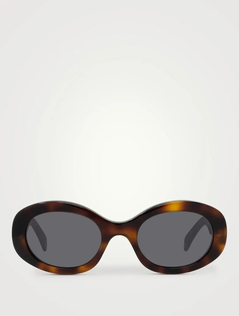 Defined by their retro-inspired, oval shape these bold acetate sunglasses are finished with the Maison’s recurring Maillon Triomphe emblem at the temples.