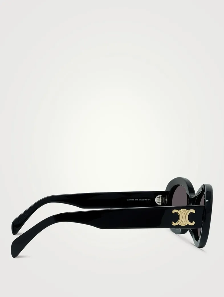 Defined by their retro-inspired, oval shape these bold acetate sunglasses are finished with the Maison’s recurring Maillon Triomphe emblem at the temples.