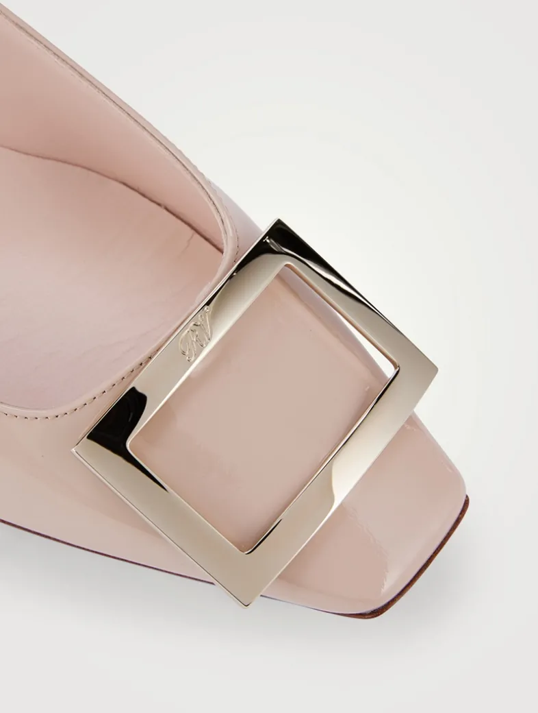 Inspired by the historic Belle Vivier, these elegant pumps feature a Trompette heel, with a slightly flared curved shape. Handcrafted in patent leather with the iconic metal buckle, they combine two emblems of the Maison in one timeless creation.