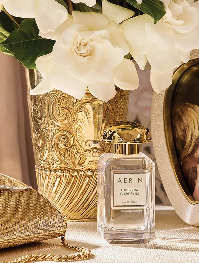 AERIN’s Fragrance Collection is a wardrobe of distinctive perfumes inspired by Aerin’s own travels, experiences, and memories. Tuberose Gardenia is an intricate floral fragrance inspired by treasured memories and heritage.