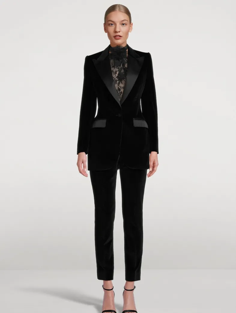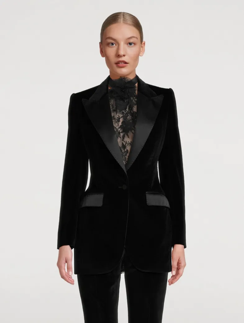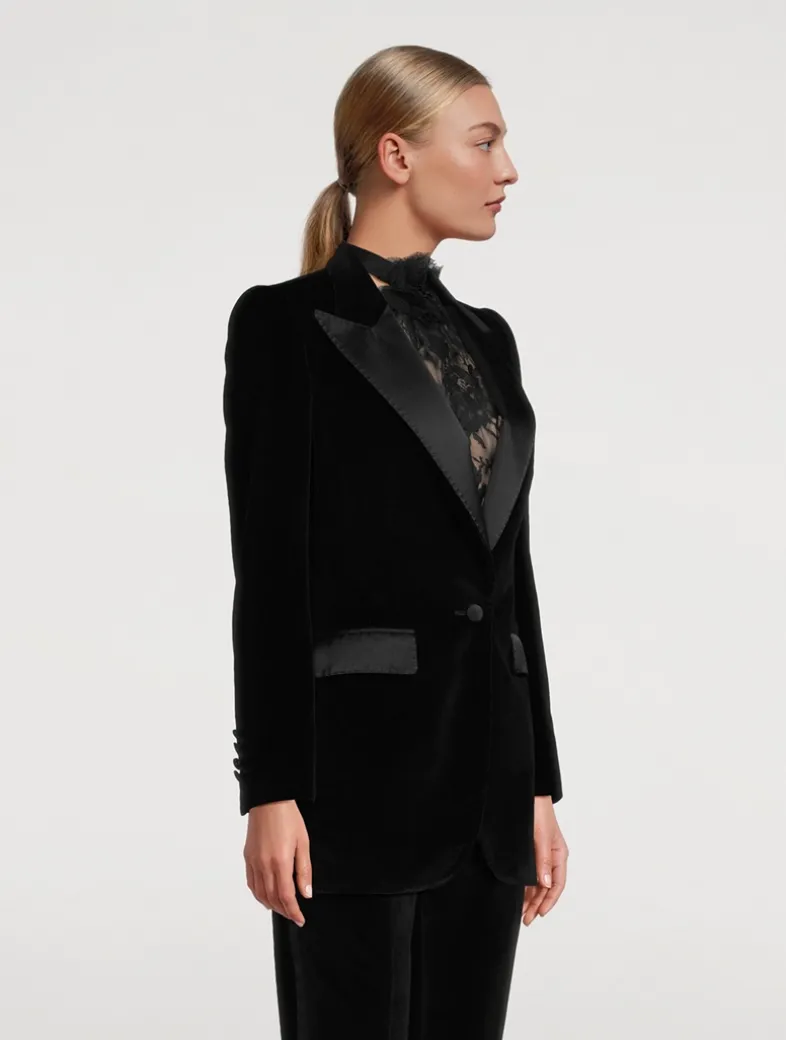 Menswear and womenswear mix and mingle, influencing one another and creating tailoring that embraces endless nuances. Crafted from plush velvet, this single-breasted jacket is edged with tonal satin trim.