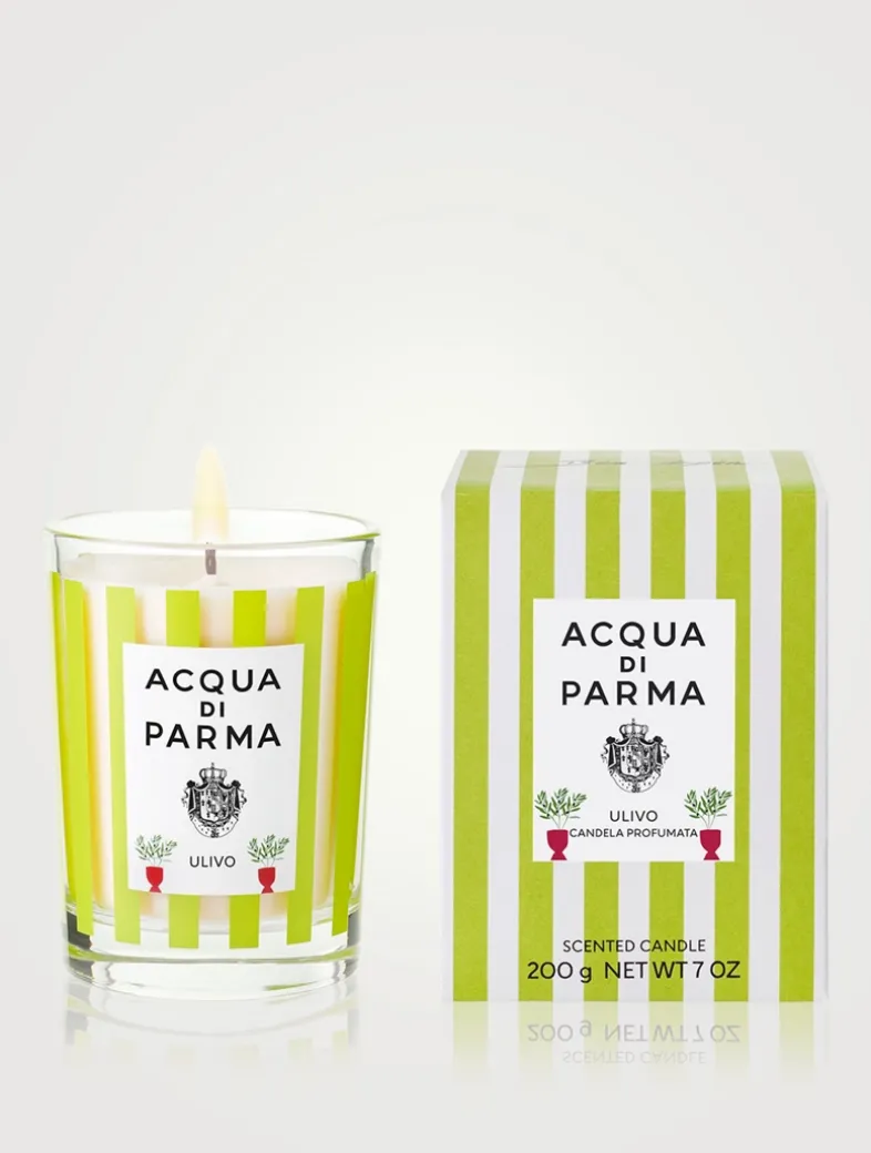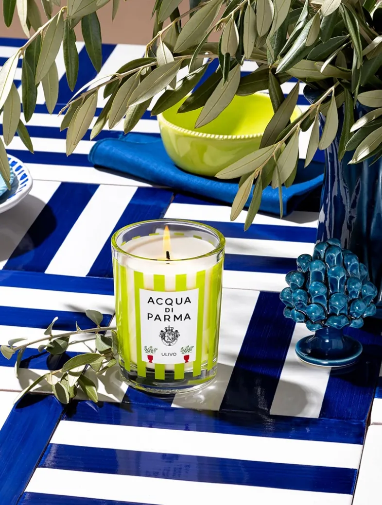 Set in a green and white stripe jar designed by Ben Arpea, the seasonal exclusive Ulivo candle diffuses a scent embodying the peacefulness of an idyllic summer.
