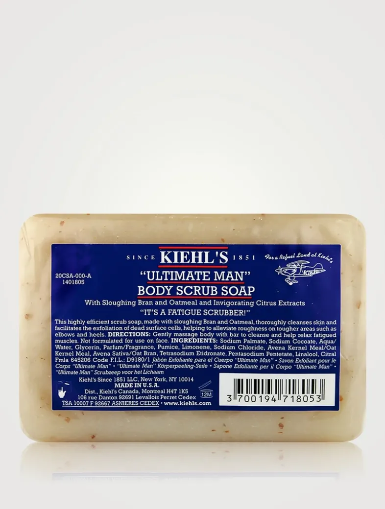 Kiehl’s Ultimate Man Body Scrub Soap is a highly efficient scrub soap, made with sloughing Bran and Oatmeal. It thoroughly cleanses skin and facilitates the exfoliation of dead surface cells, helping to alleviate roughness on tougher areas such as elbows and heels.