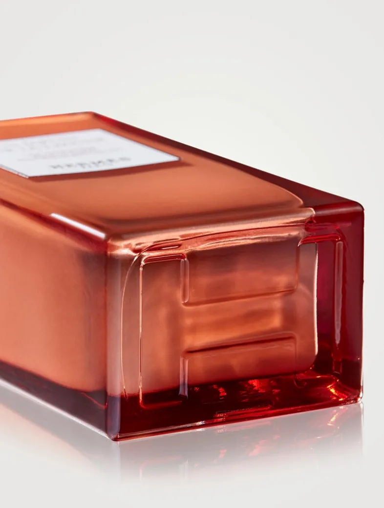 The Object: The straight lines of the bottle are embellished with a delicate Venetian ochre, emblematic of the Un Jardin sur la Lagune eau de toilette, and two signature details: the H imprint of the base and the Clou de Selle engraved on the pump.