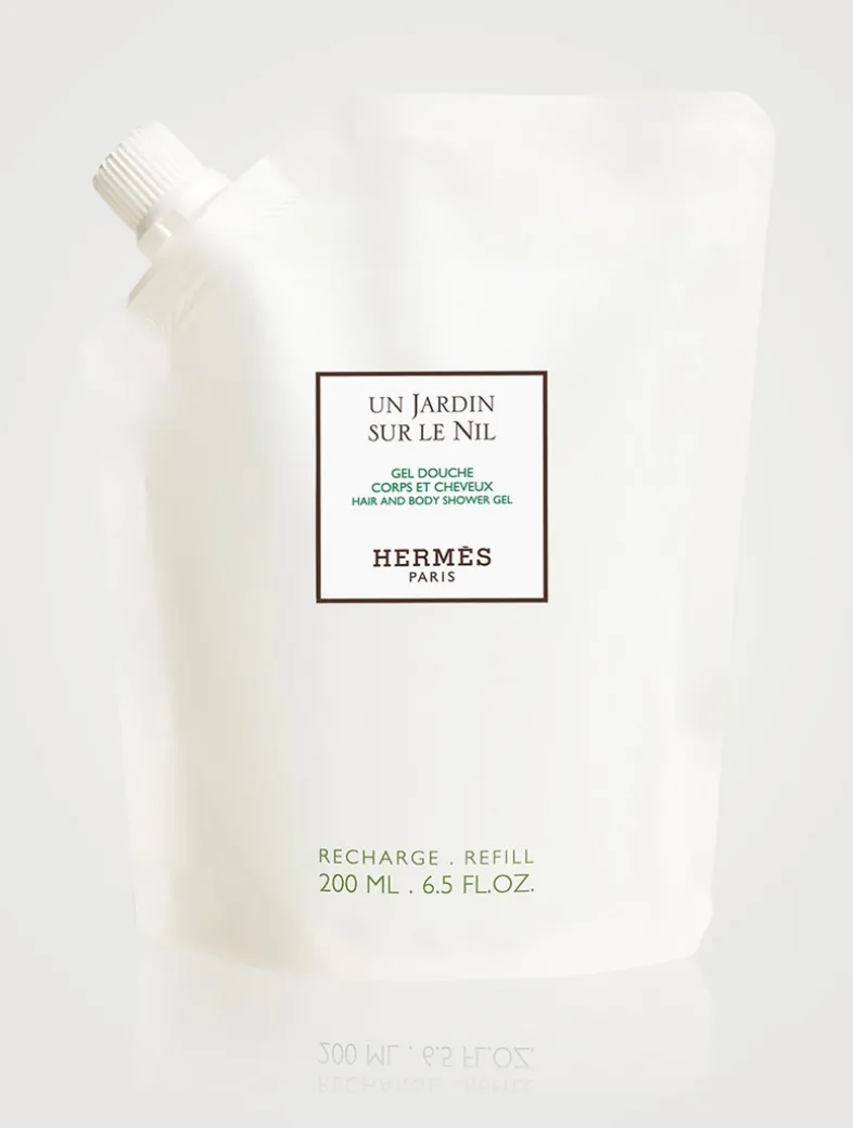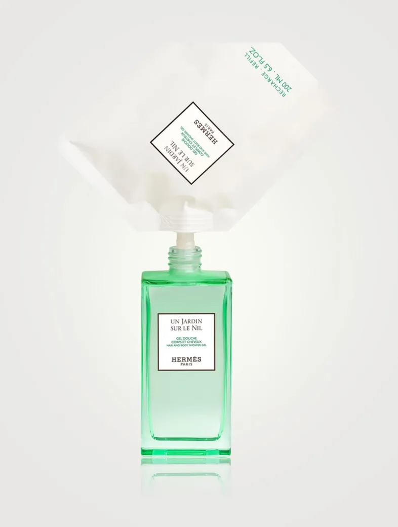 Un Jardin sur le Nil expresses the gentle escapism of the Parfums-Jardins in the form of a shower gel. Another way to wear fragrance. An environmentally friendly formula that forms a pleasant, easy-rinse lather. The fully recyclable refill can be used to replenish the glass Un Jardin sur le Nil shower gel bottle of the same size. A responsible gesture, integral to an object created to last.