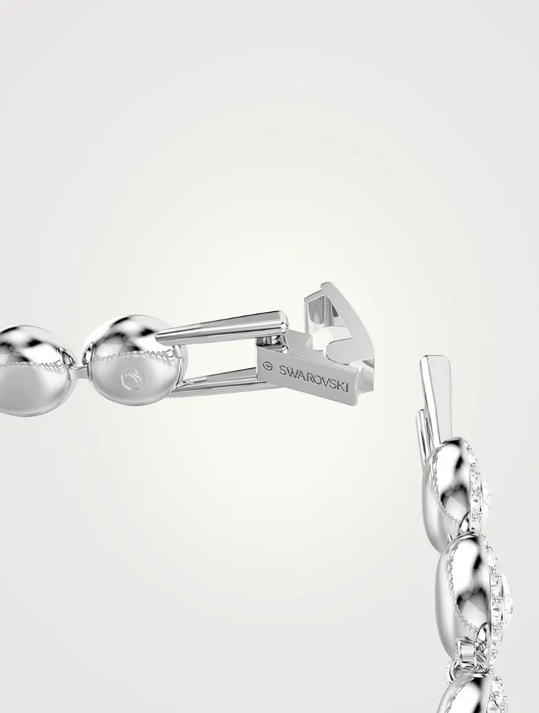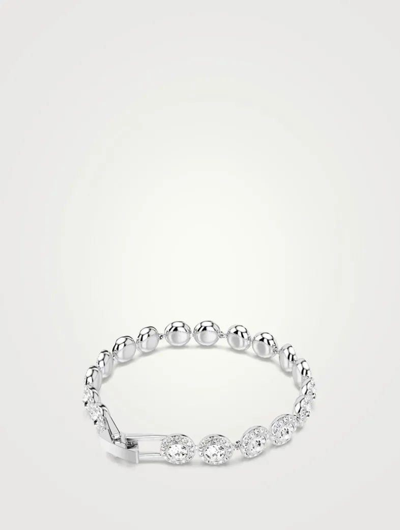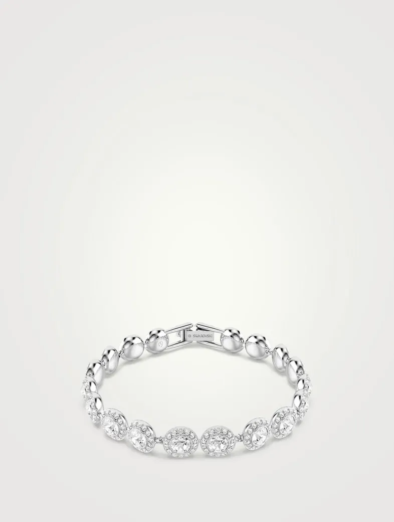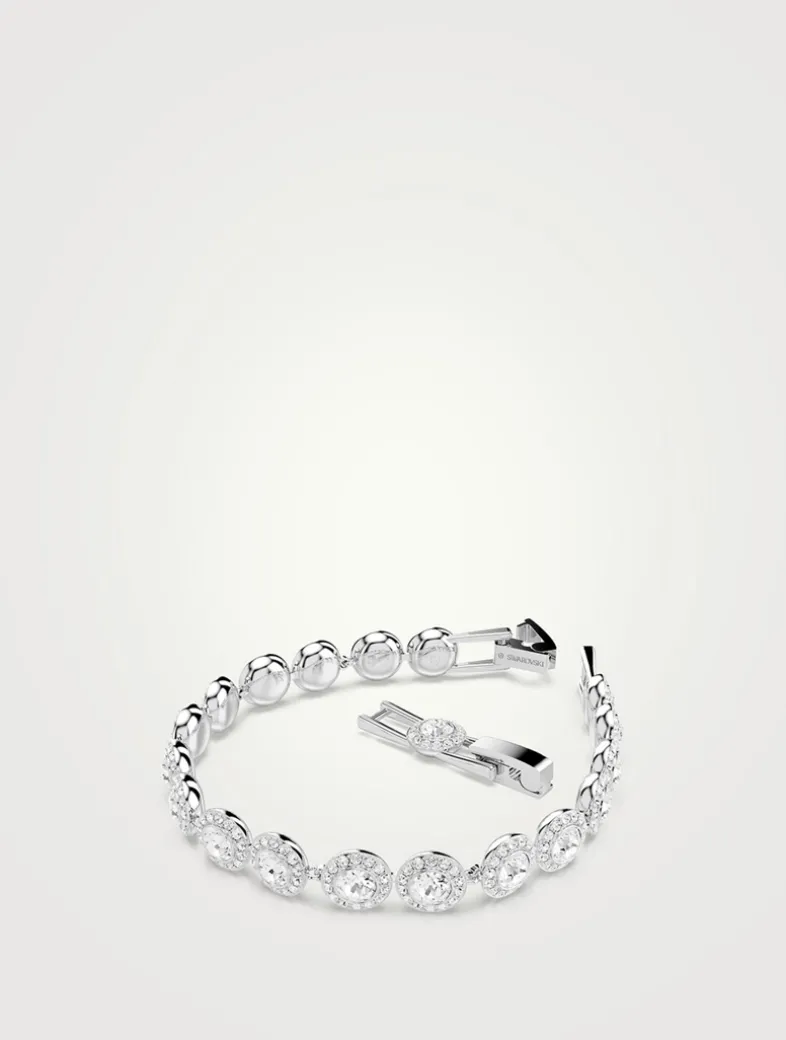 Wrap your wrist in light with this luminous Una bracelet. The rhodium plated design features individual links, each set with a brilliant central crystal and a halo of smaller round-cut crystals.