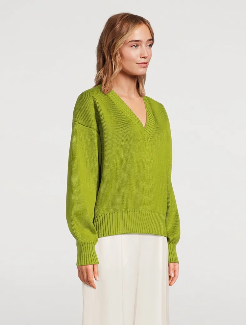 A classic V-neck design for everyday wear, this piece offers style and comfort in perfect unison. Designed with a relaxed fit with a dropped shoulder, knit from breathable organic cotton yarn.