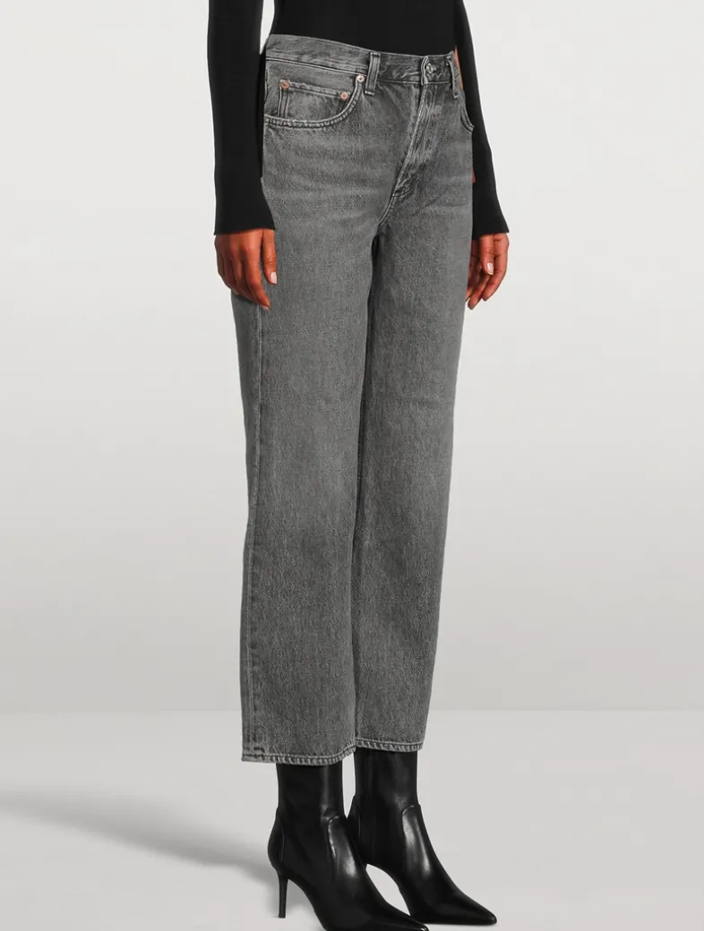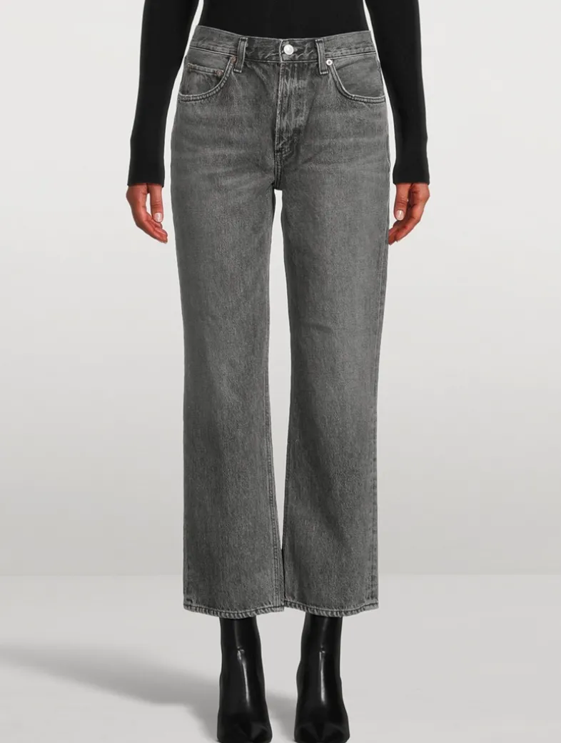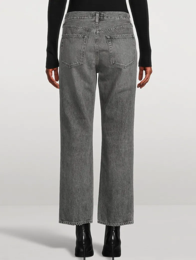Made in the USA, these jeans have a mid-rise, vintage-inspired straight-leg with an ankle-grazing inseam. Designed with a flattering square top block. They are crafted in a non-stretch, denim made from regenerative cotton with a super-soft feminine hand.