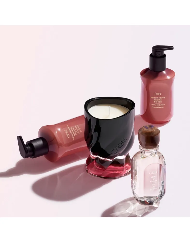 An ultra-moisturizing body cream that deeply hydrates and rejuvenates skin to appear more youthful – available in Oribe’s three scents. This multi-vitamin and antioxidant rich formula provides the deepest hydration while imparting a healthy glow and firmer-looking skin. Valley of Flowers infuses skin with fresh notes of rose, jasmine petals and peony blossoms that soften into warm amber and creamy musk.