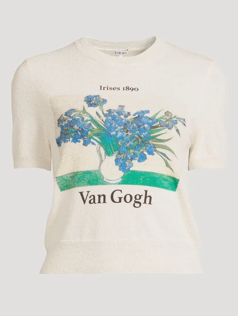 Featuring a striking Van Gogh motif at the front, this bouclé-effect sweater makes a statement. It is knit from a lightweight cotton-blend yarn and cut to a slim silhouette with a crew neckline and short sleeves.