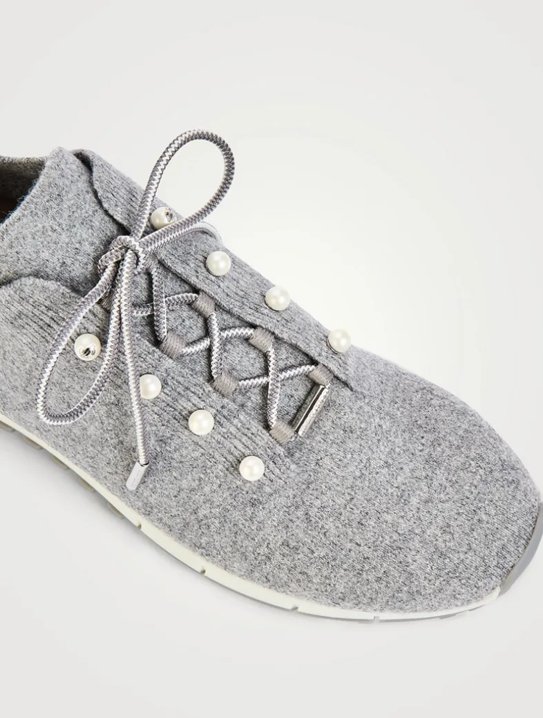 The Veles trainers are a unique design crafted from cashmere complemented by pearl-embellished eyelets. Designed with a sock-like upper for a comfortable fit, this lightweight style also features a flexible sole.