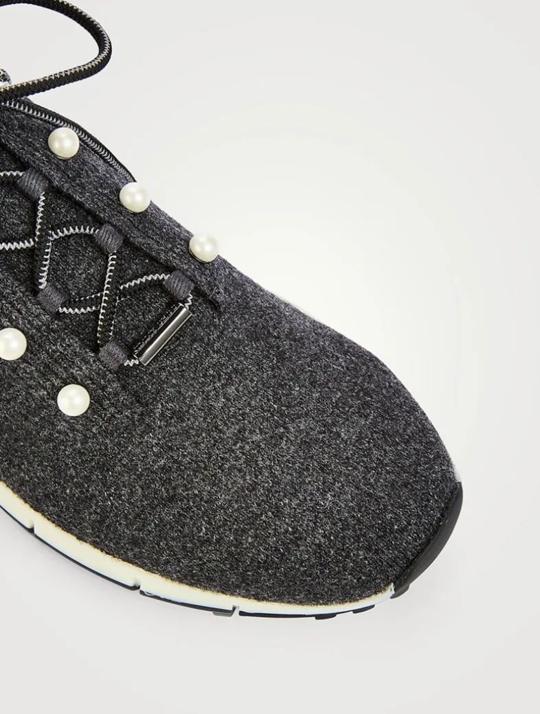 The Veles trainers are a unique design crafted from cashmere complemented by pearl-embellished eyelets. Designed with a sock-like upper for a comfortable fit, this lightweight style also features a flexible sole.