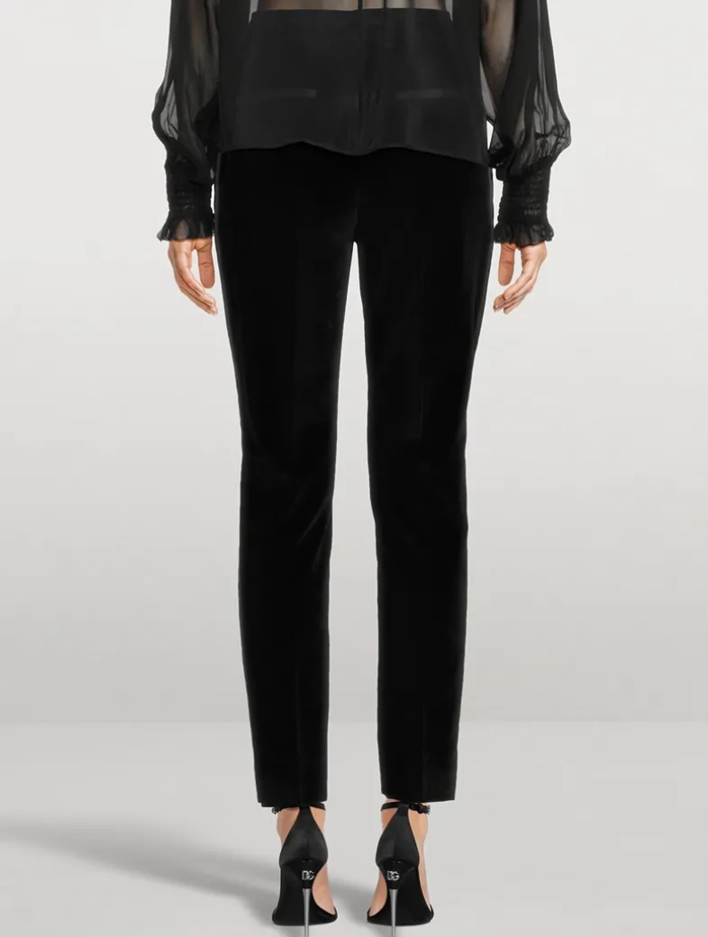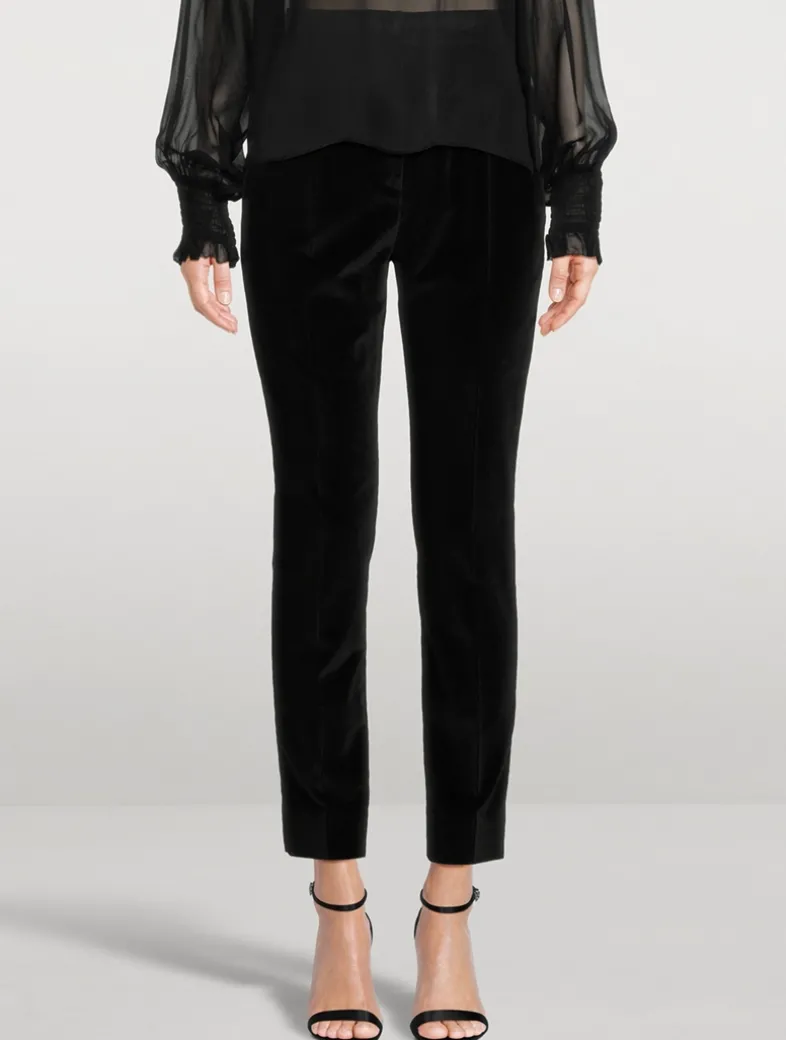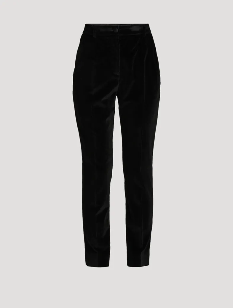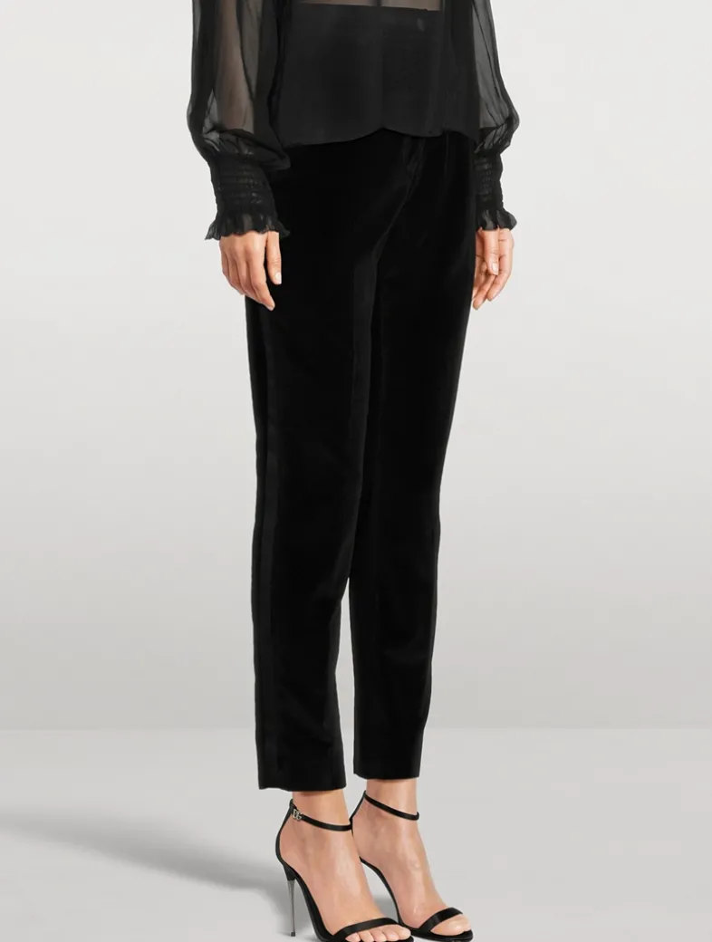 Menswear and womenswear mix and mingle, influencing one another and creating tailoring that embraces endless nuances. Crafted from plush velvet, these high-waisted trousers are cut with a slim-leg silhouette.