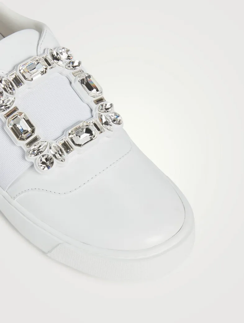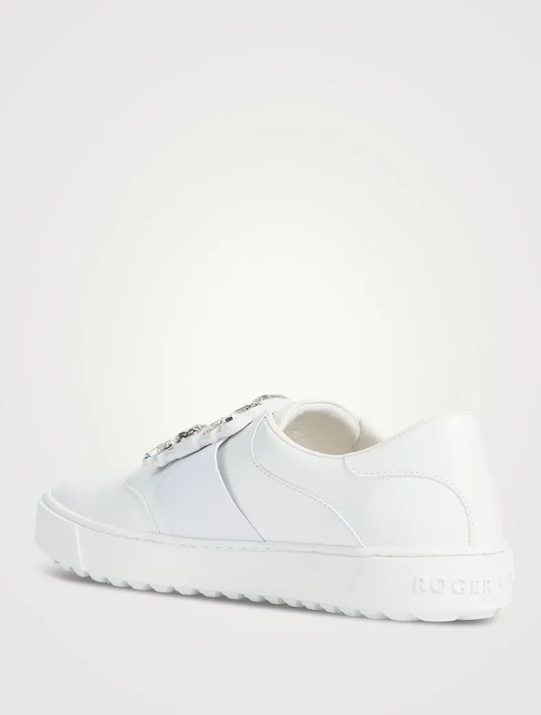 ROGER VIVIER’s new slip-on sneakers feature a fun outsole with a floral pattern on the bottom. The perfect synthesis of urban style trends and functional luxury, this must-have in leather comes with a shiny jewelled buckle.