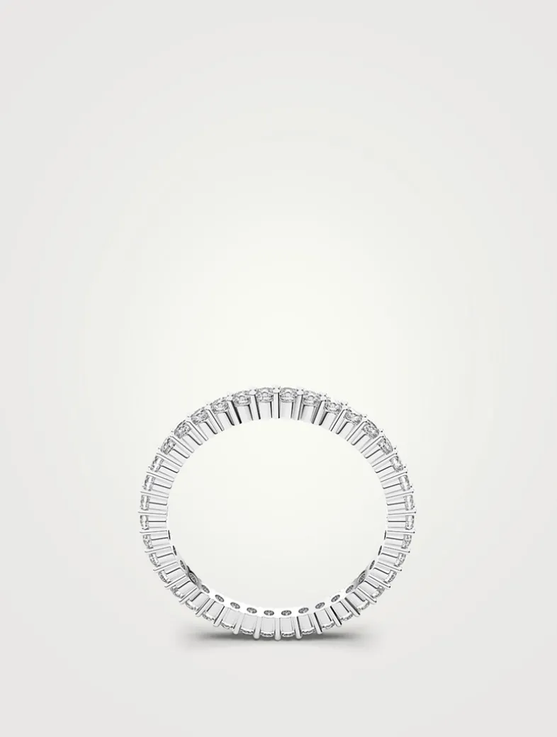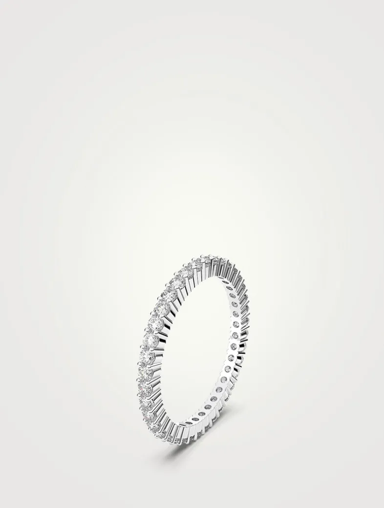 A slim band is graced by a complete circle of gems in this SWAROVSKI ring. Round cut cubic zirconia glitter in this classic ring, set in rhodium plated metal.