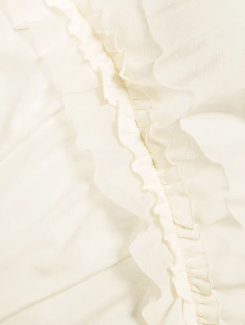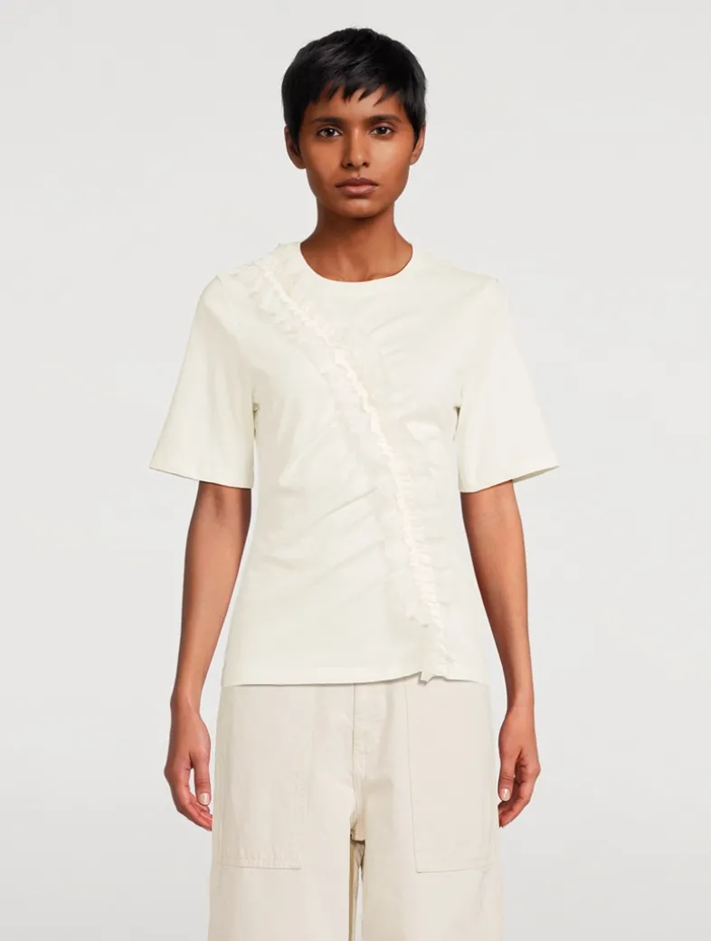 The Vivi is a classic T-shirt silhouette enlivened by a burst of cascading frills in raw-edge chiffon. It’s spun from soft organic cotton jersey.