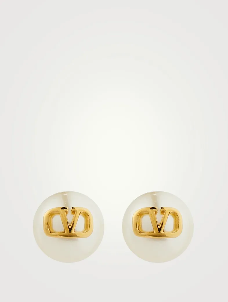 These faux pearl stud earrings are wrapped with VALENTINO’s signature VLOGO.