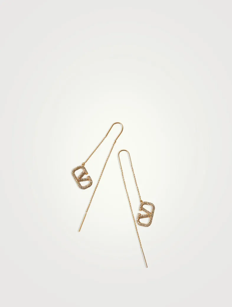 These delicate threader chain earrings are designed with hanging VLogo accents embellished with sparkling crystals.