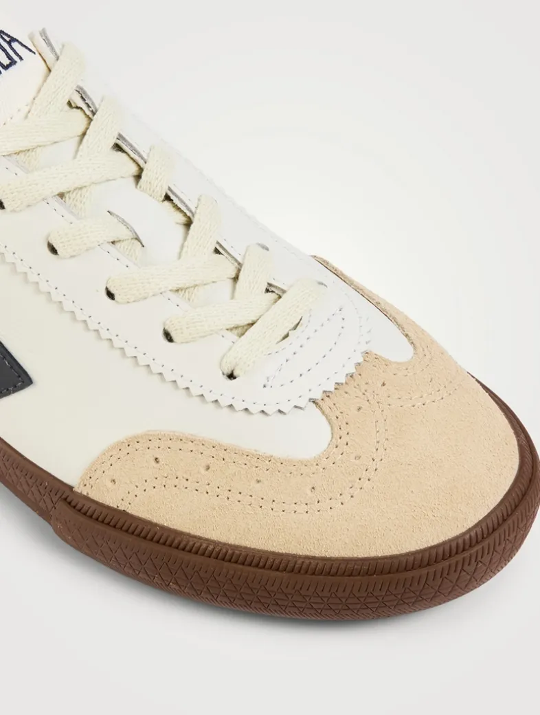 These sneakers are inspired by volleyball trainers. They are crafted from organic traced leather that comes from 100% certified organic farms in Uruguay, a country known for its livestock farming culture and high-quality leather. Made in Brazil, they are set on a sole made out of wild rubber from the Amazonian forest.