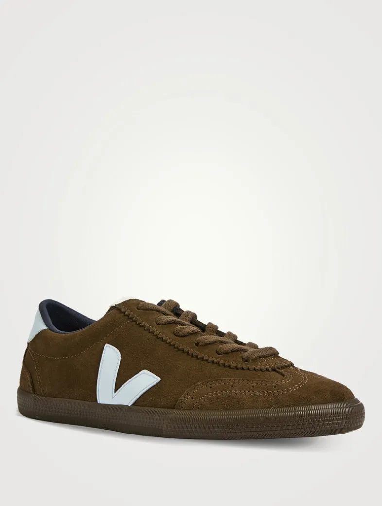 These sneakers are inspired by volleyball trainers. They are crafted from suede which has been coated with PFC-free, water-repellent oils to shield the sneakers from light rain. Made in Brazil, they are set on a sole made out of wild rubber from the Amazonian forest.
