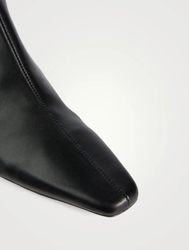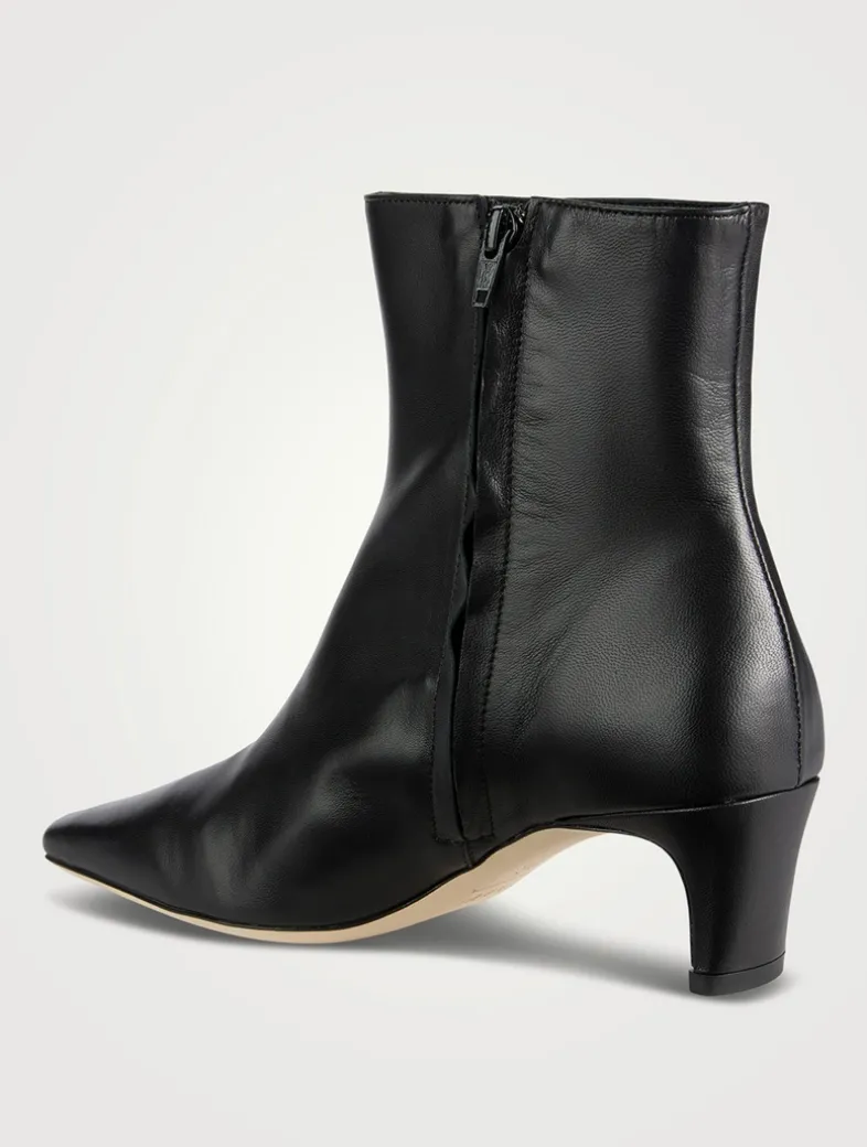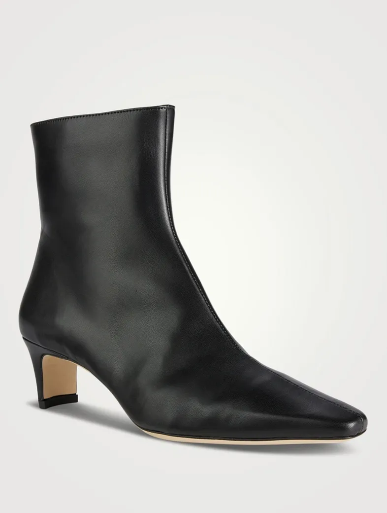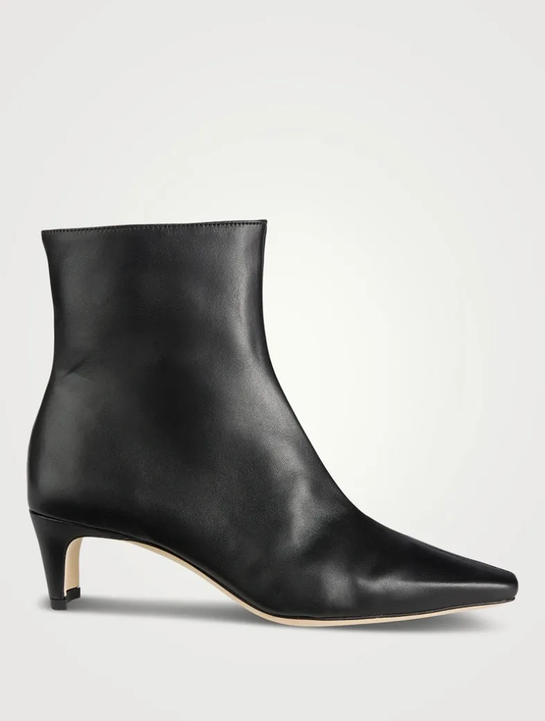 A leather ankle boot, this style features a pointed rectangular toe and a blade heel. The Wally Ankle boot features a side zip closure for a secure fit.