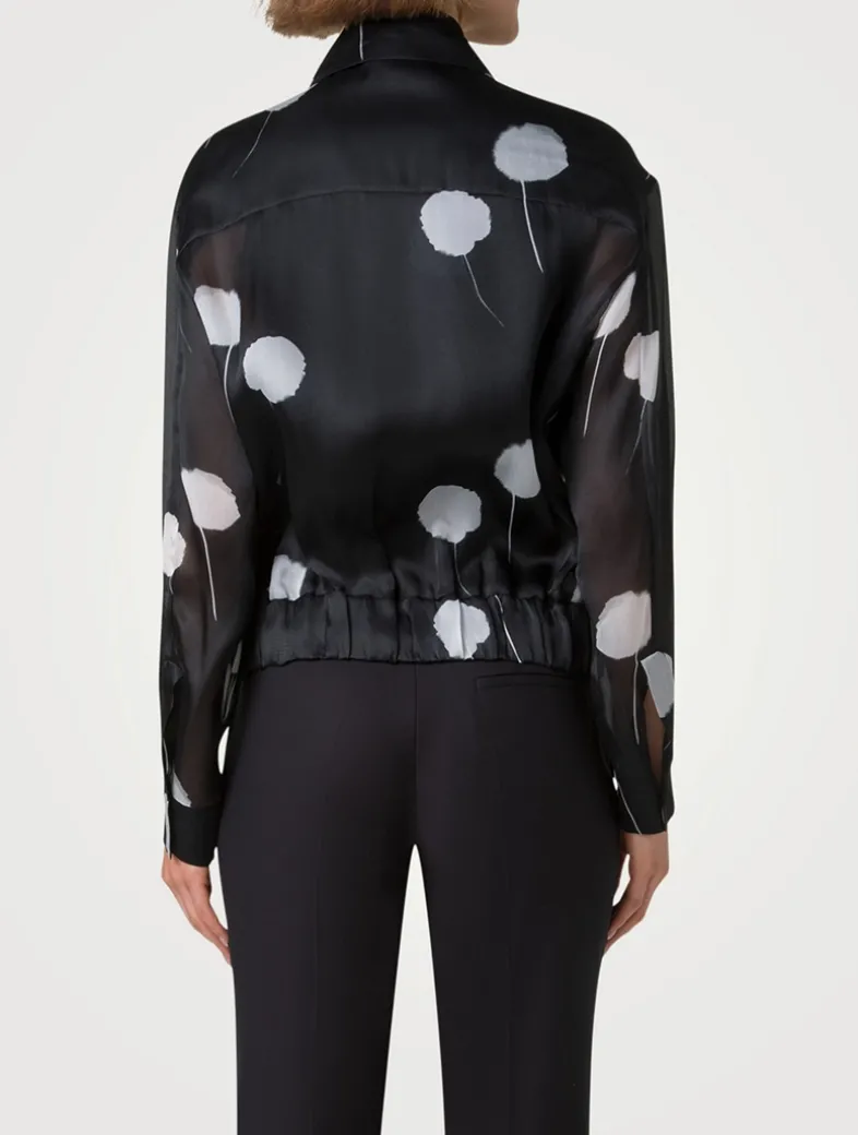 Presented in a timeless and always-flattering blouson silhouette, this silk crêpe jacket features a charming dandelion print throughout. Detailed with a shirt collar, dropped shoulders, and an elasticated waist, the elevated piece is complete with side pockets and a concealed front zipper closure.