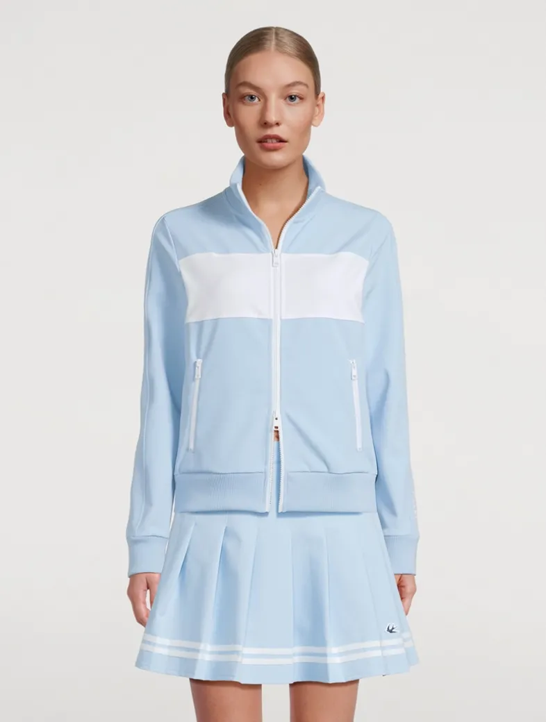 Crafted from stretch, moisture-wicking, quick-dry, and wrinkle-resistant fabric, this zip-front jacket offers breathable comfort and a cool touch—perfect for peak performance, whether you’re warming up or cooling down.