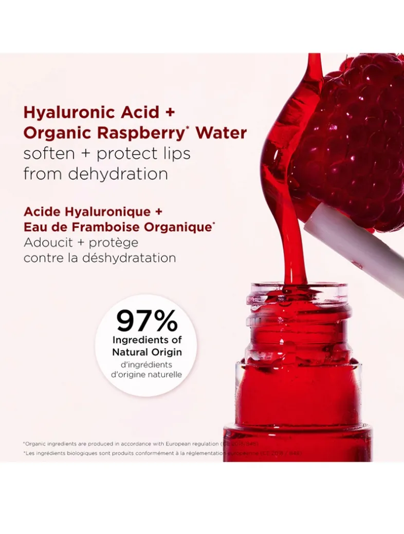 Lip-hydrating care: As refreshing as it gets. The [WATER-SHOT] COMPLEX features a hyaluronic acid complex to boost moisture levels, and organic raspberry water. Its formula ensures lips stay moisturized and protected from dehydration.
