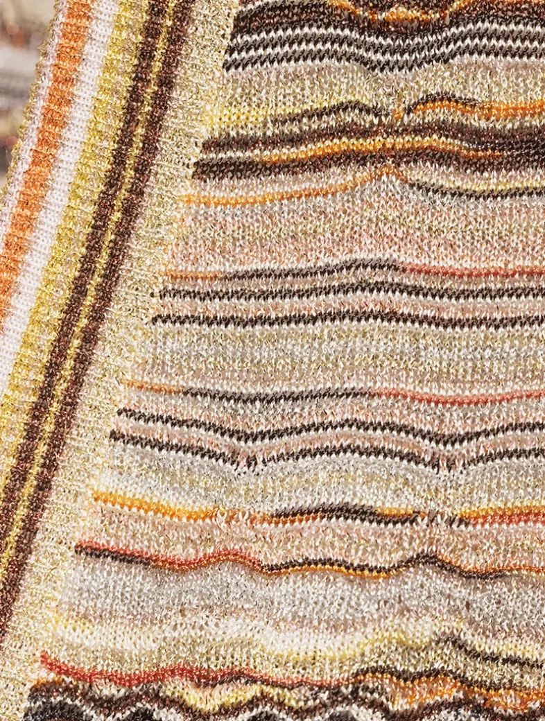 This cardi, created with the mastery of Missoni, stands out for its textured knit fabrication and the shimmering wave pattern, which is symbolic of the maison. Cut in a curve-hugging silhouette, it has a V-neckline, long sleeves, and buttoned closure.