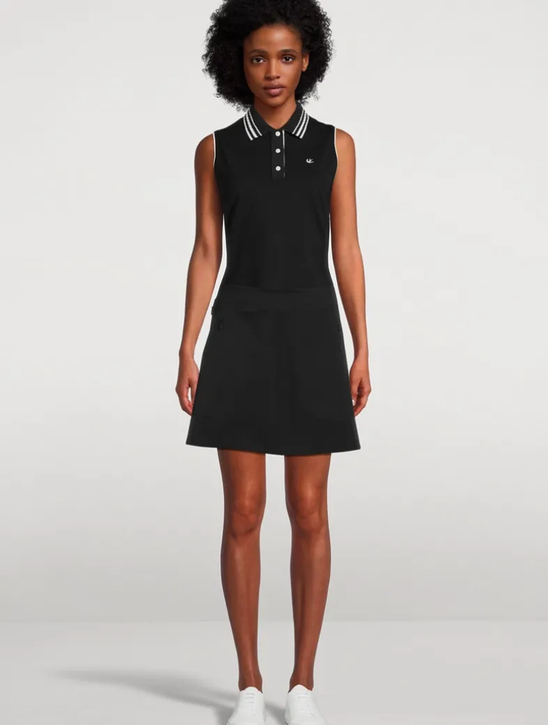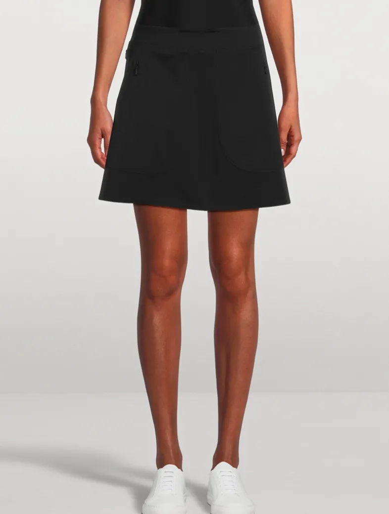 A minimal A-line skirt with built-in shorts and waterproof welded seams, in a moisture wicking, water repellent, four way stretch fabric for a functional finish.
