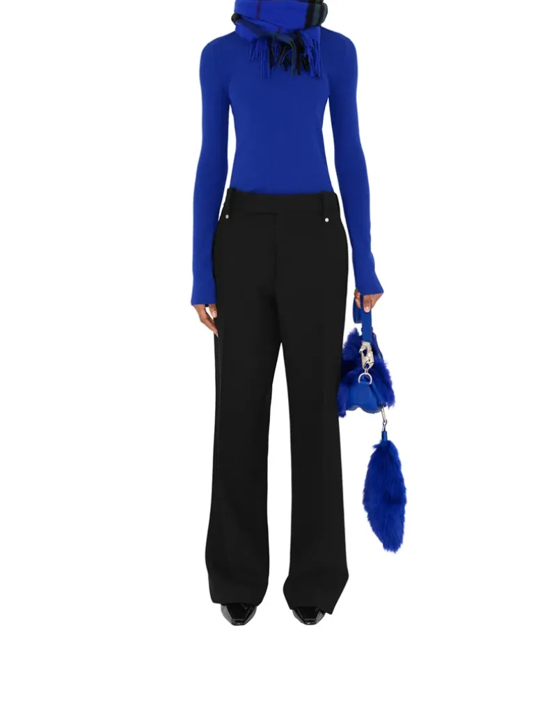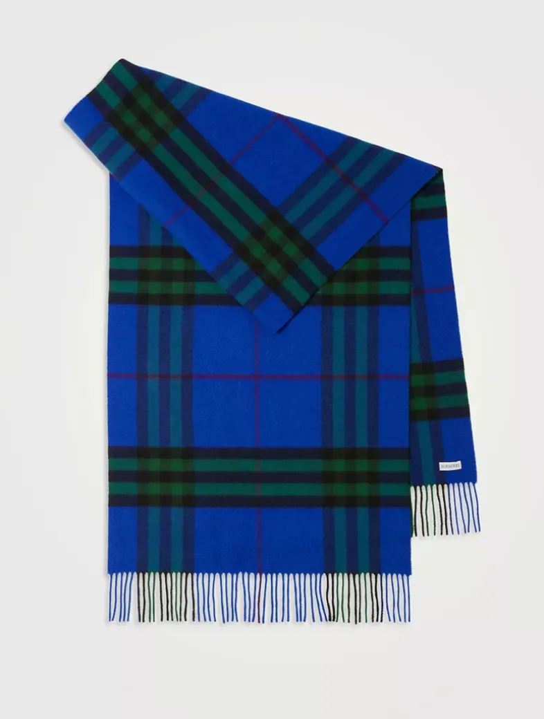 A Burberry Check cashmere scarf, made in Scotland at a mill founded in 1797. Woven on traditional looms, the fabric is washed in local spring water and brushed with teasels – dried flowers that are drawn along the surface of the cashmere to ‘raise’ the cloth, creating a natural lustre and ultra-soft finish. Two further washes are given for a fuller texture.