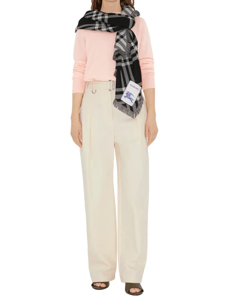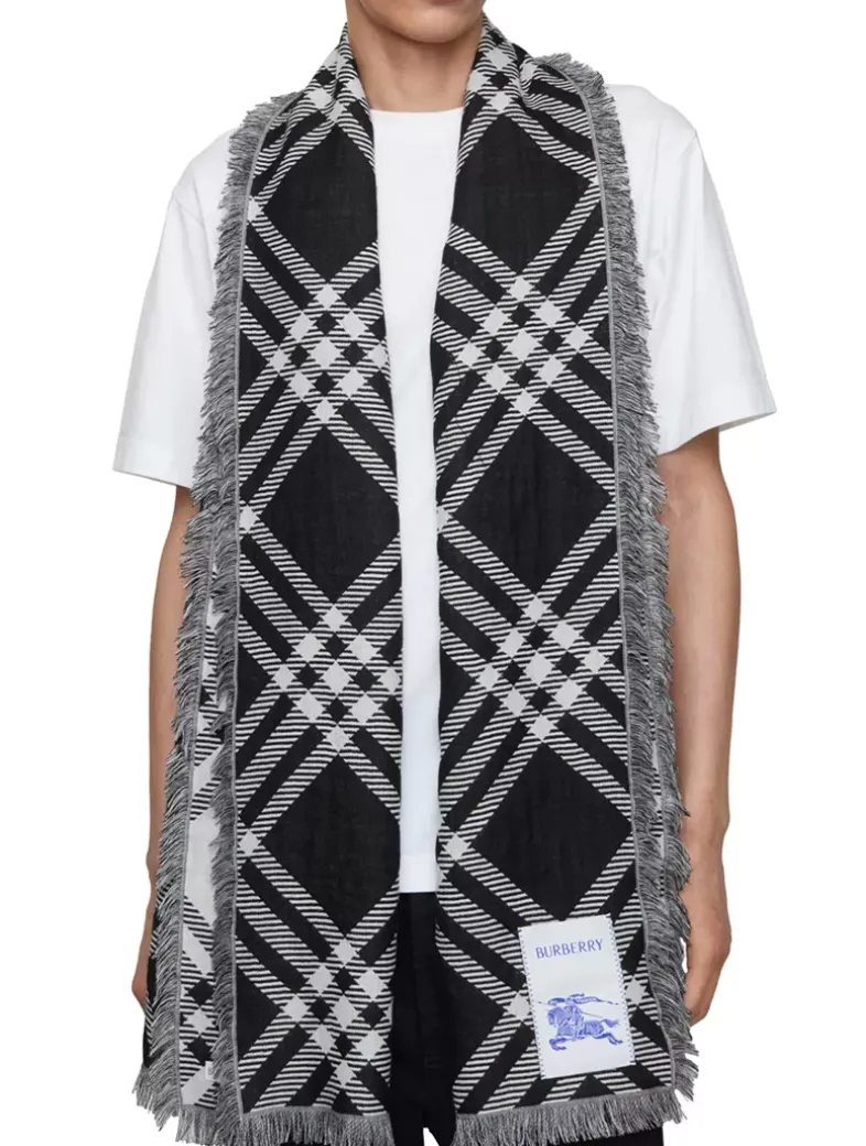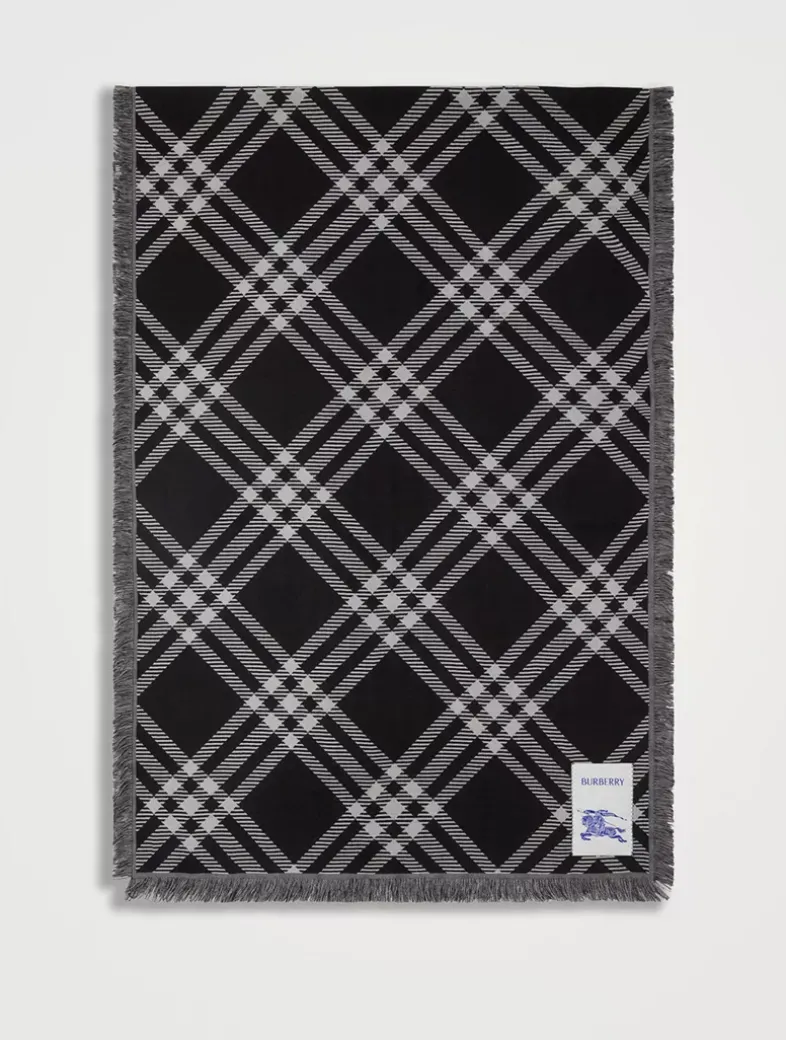 A scarf made in Italy from soft wool silk woven with a check pattern. The lightweight design is finished with an Equestrian Knight Design label.