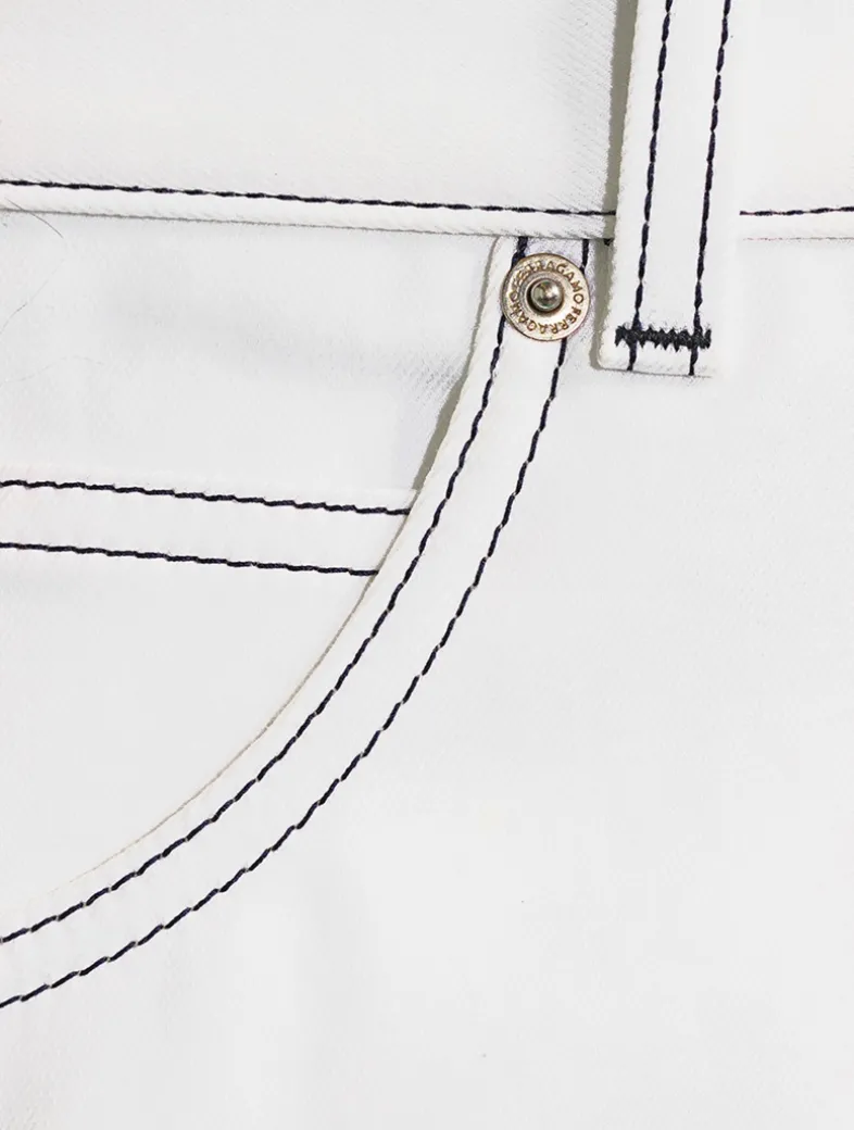 Original stitching details and a contemporary cut give these heavy denim jeans a high-end look. Inspired by the classic five-pocket trouser, they feature all the textbook elements: zip fastening with metal tab button, rivets on the front pockets, and visible double stitching in all the right places. Beyond fashion, beyond seasons.