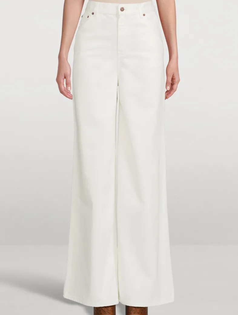 Cut to sit high on the waist, these five-pocket jeans have a dramatic wide-leg silhouette. They are crafted in Italy from 100% cotton denim.