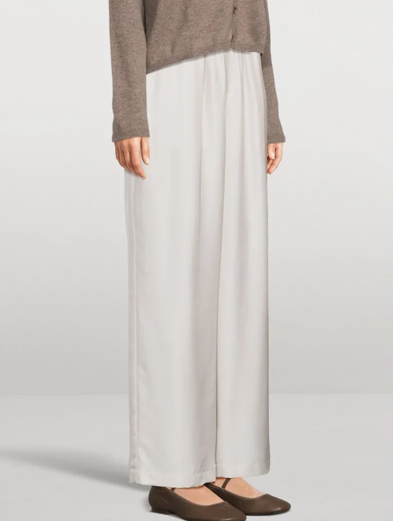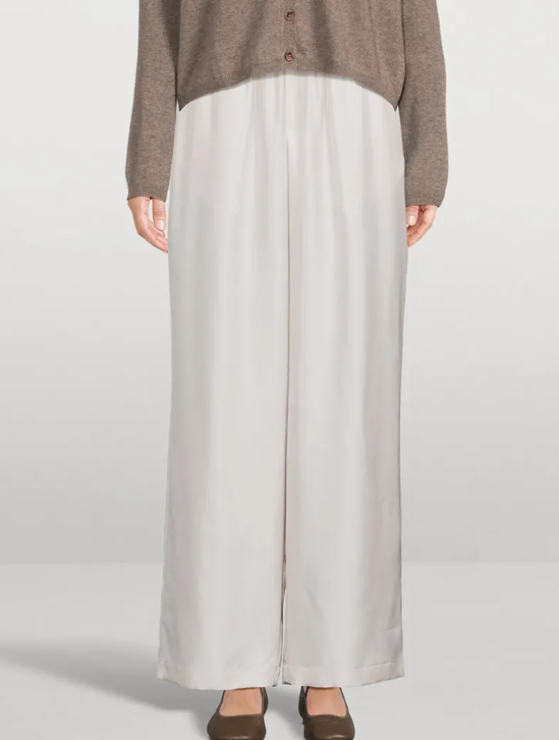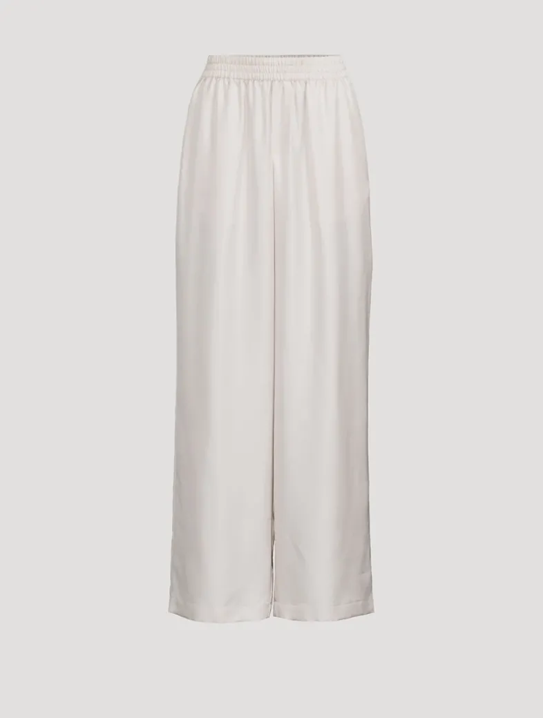 In woven twill silk, the wide-leg trouser has a relaxed, full-length fit through the leg, with a mid-rise, elasticated pull-on waistband.