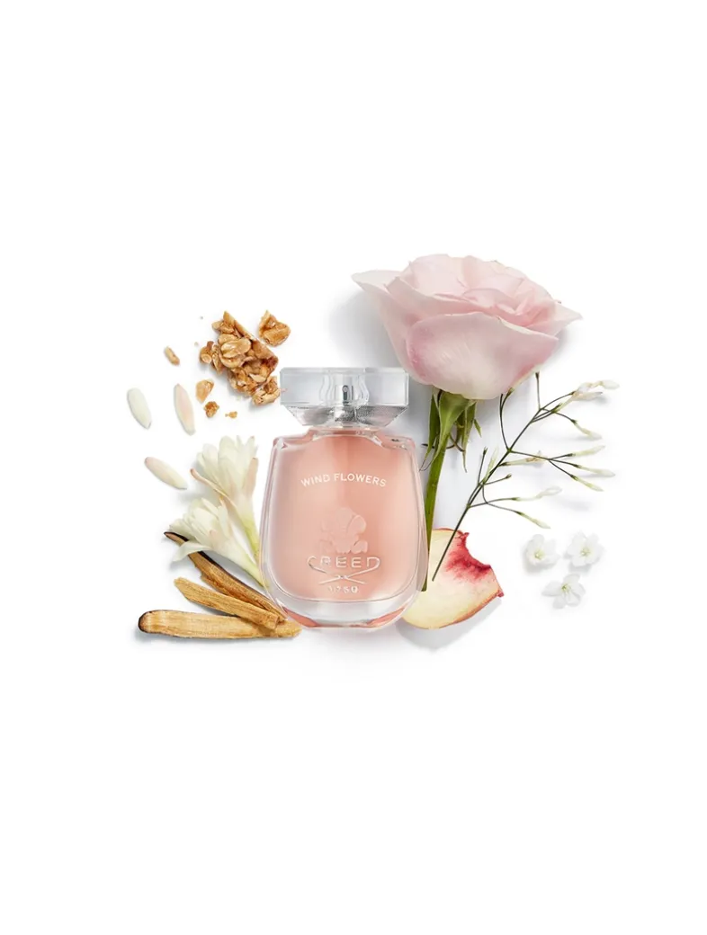 Inspired by movement, Wind Flowers is the latest women’s perfume from the House of Creed. Floral and fresh, this fragrance opens with sweet jasmine, wrapped around the zesty scent of Tunisian orange blossom and softened by a fresh and a fruity peach note, a powerful heart of delicate jasmine flower, tuberose petals and a soft rose extract add depth and texture to this fragrance while a warm flurry of sandalwood is twisted around a haze of iris and musk. A vibrant note of orange blossom and creamy praline offsets this dusky floral scent; bringing to life this luminous fragrance for her.