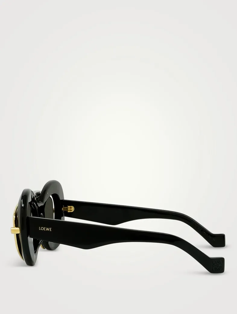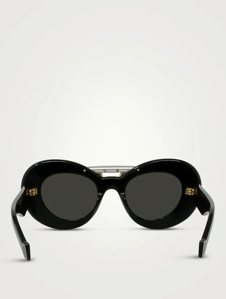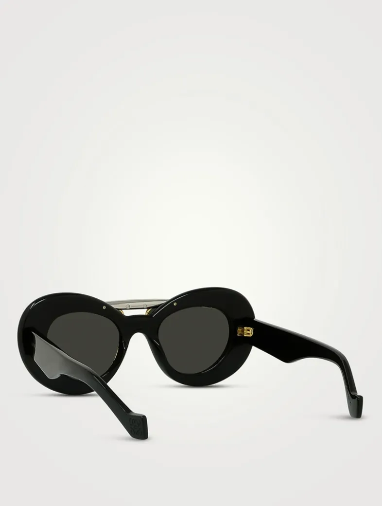 Mixing the cat eye acetate frame from the Curvy family and the pilot metal frame from LOEWE’s FW23 collection, these sunglasses feature only one pair of lenses and the brand’s logo on the arm.