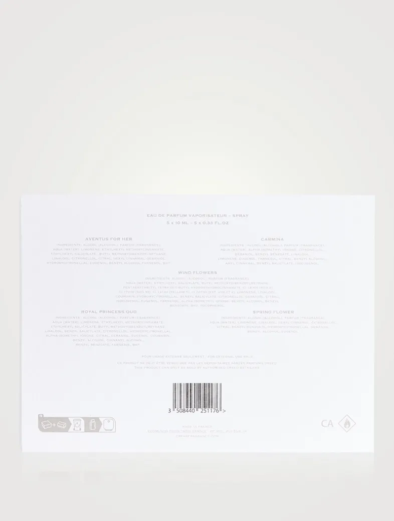 Created for an exceptional olfactory experience, this perfume discovery set will help you perfect the art of gifting this festive season. Designed in an oversized print of the Creed signature pattern, this perfume set for her features 5 of the house’s gorgeous signature scents: Aventus for Her, Wind Flowers, Carmina, Royal Princess Oud and Spring Flower. Inspired by the 260-year-old history of the brand, this beautiful fragrance discovery set for her creates a timeless gift for now and forever.
