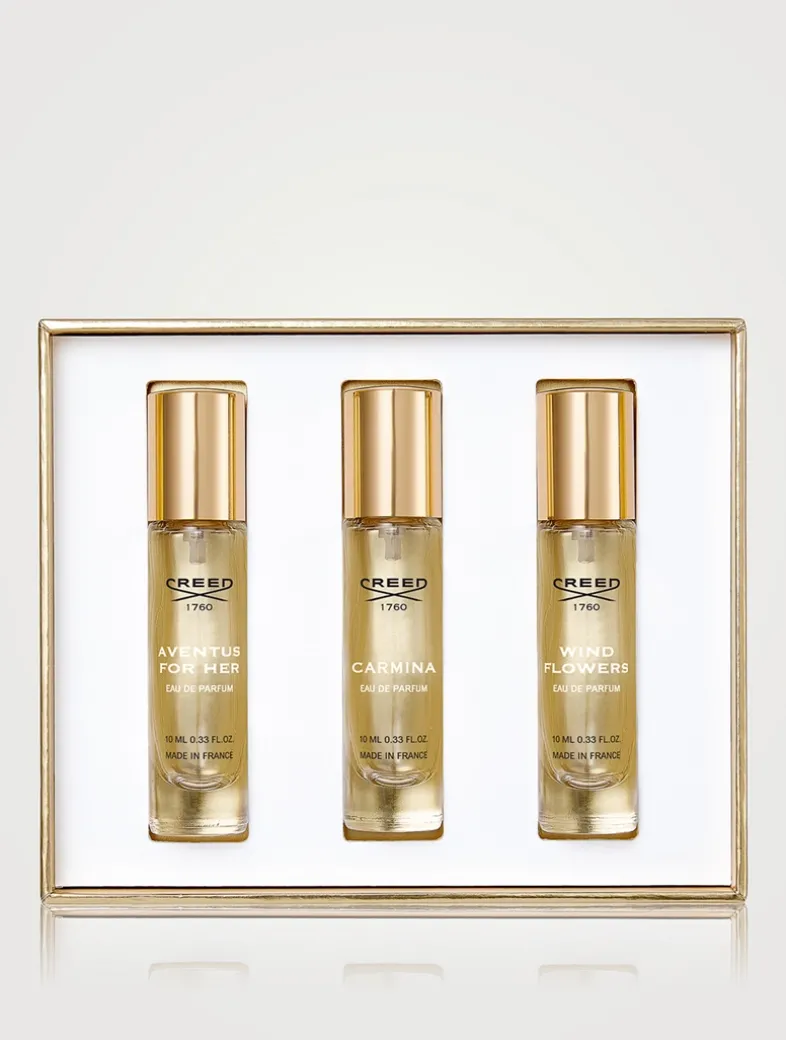Perfect the art of gifting this festive season with The House of Creed. Created for an exceptional olfactory experience, the Eau de Parfum gift set features the house’s signature feminine scents: Aventus for Her, Wind Flowers, and Carmina. Designed in the Creed signature pattern, the oversized print is inspired by the 260-year-old history of the brand which creates a timeless gift for now and forever.