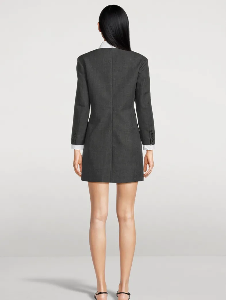 This sharp, limited-edition dress marries the enduring elegance of the classic shift silhouette with distinctive Thom Browne emblems. Crafted from wool trimmed with cotton, it has buttoned cuffs with signature striped grosgrain trim and matching striped grosgrain loop tab.