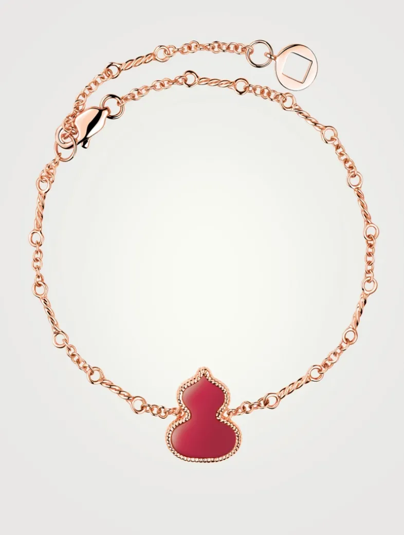 Ring chain bracelet embellished with a pear-shaped charm filled with agate.