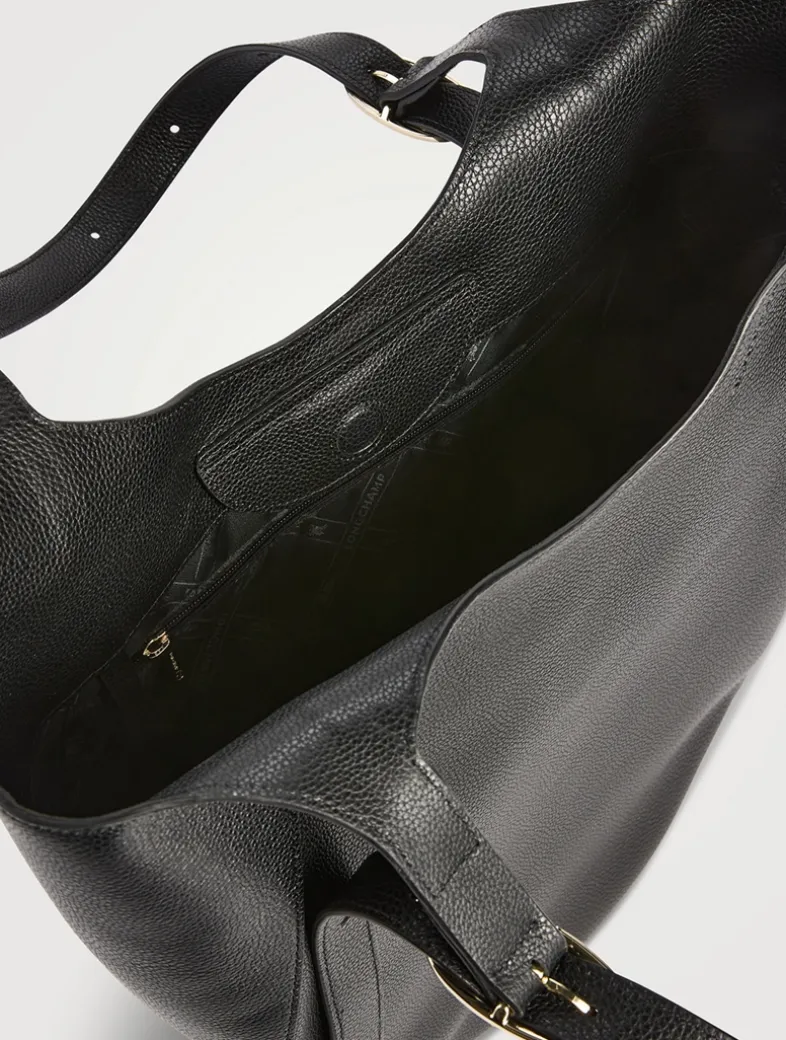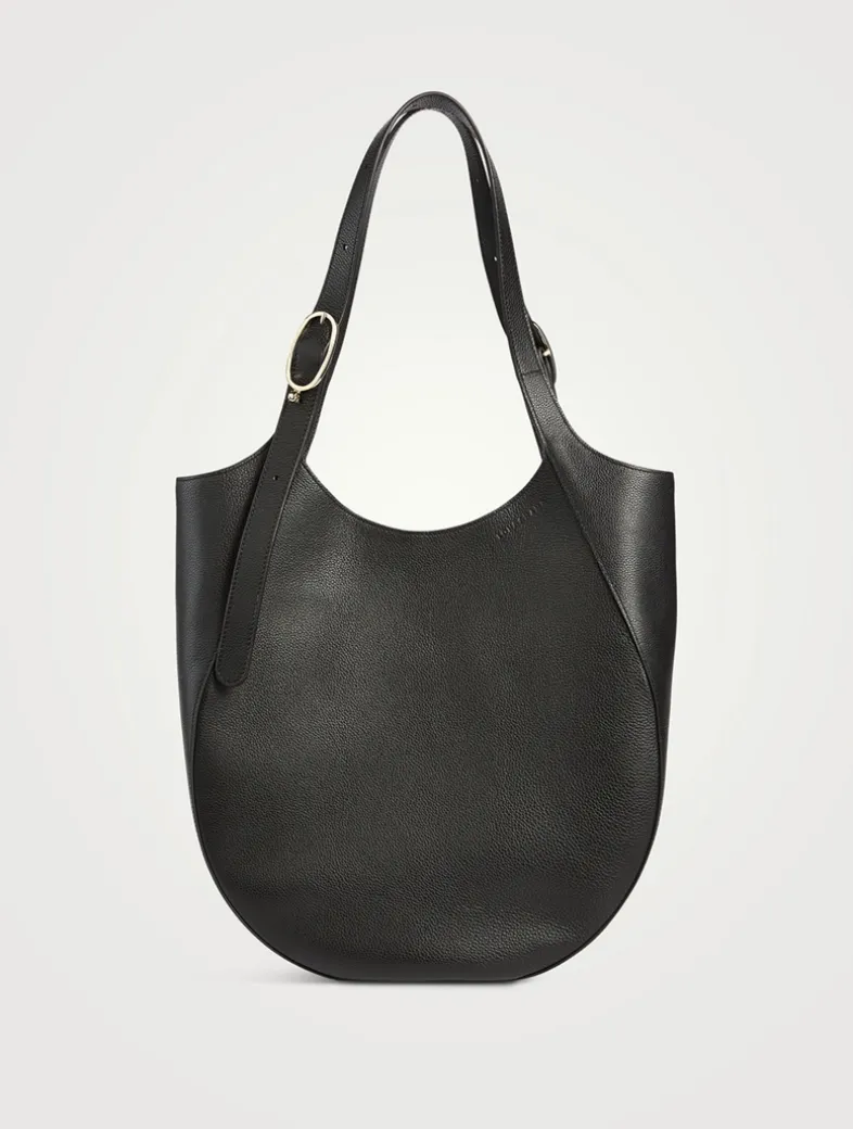 This extra large grained cowhide leather tote exudes softness and femininity with its supple, rounded shape. Adjustable handles provide exceptional versatility, making it perfect for any occasion.. Its spacious interior, it offers ample room to carry a laptop or A4 documents with ease and sophistication. A pale gold-tone ardillon buckle adds a radiant touch to the handle, while an integrated round clasp allows you to attach your favourite bag charms.